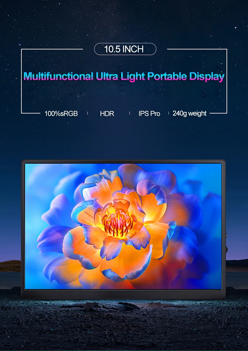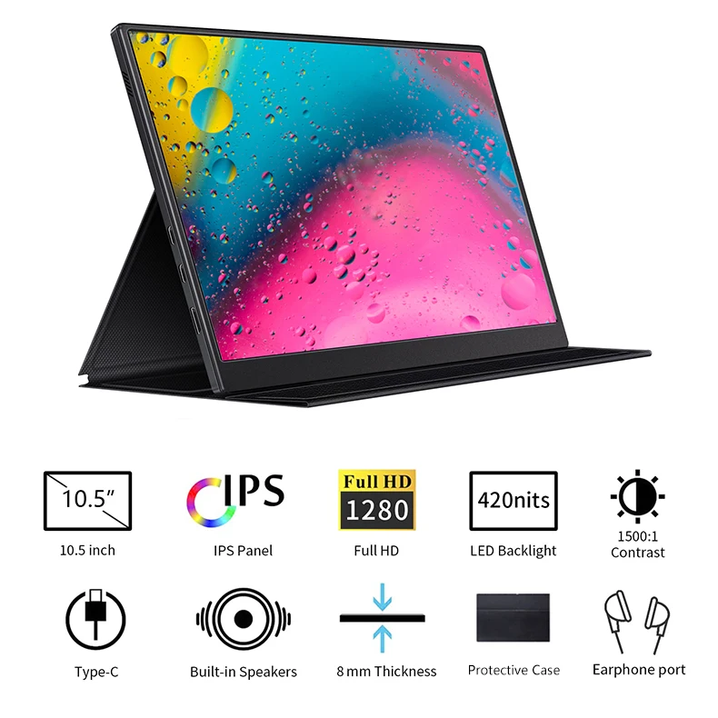 10.5 Inch 1280P Ultralight Portable Monitor 100%sRGB 420Cd/m² IPS Mobile Display Second Screen For PC Laptop Xbox PS4/5 Switch