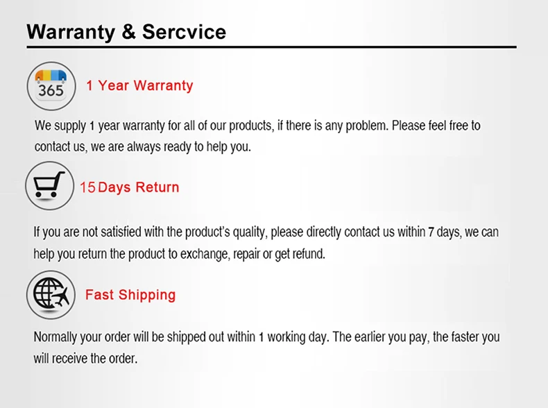 • If you did not receive the product within the guaranteed time( 45 days not including 2-5 day processing) you can request a refund or a reshipment.