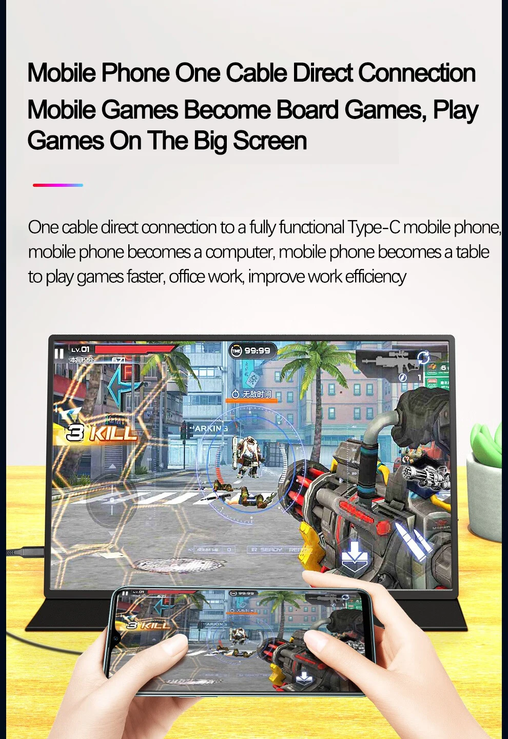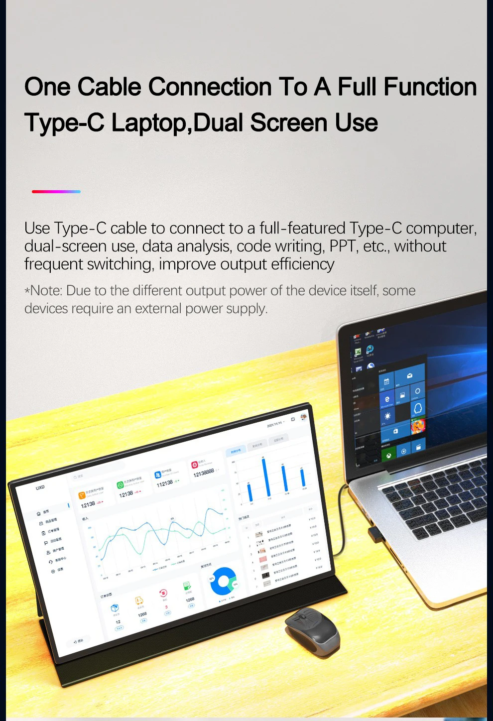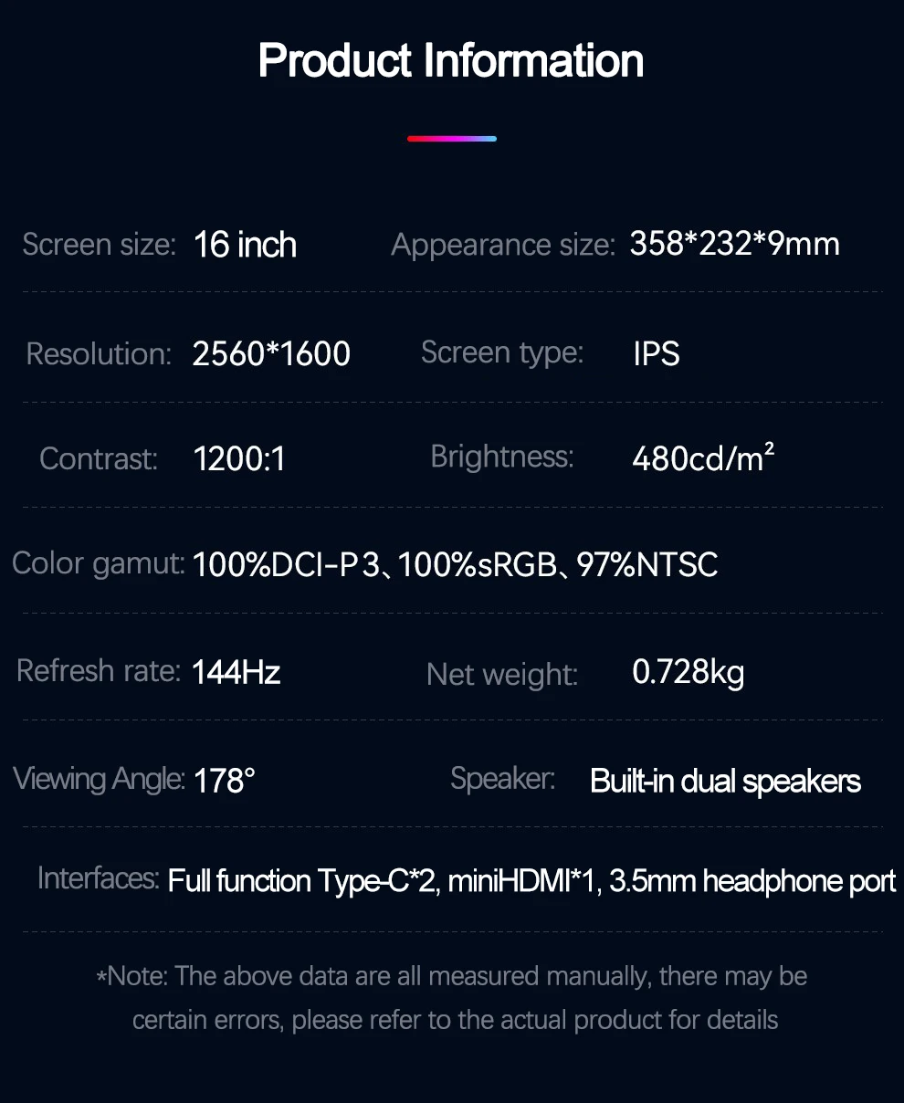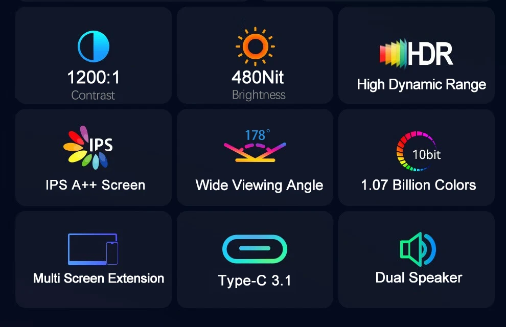 【2.5K UHD Portable Monitor】the monitor with 2.5K resolution which is equivalent to 2.5 times the resolution of 1080P, 100%sRGB and HDR technology, brings the ultimate visual experience, displays richer pictures and more complete colors.