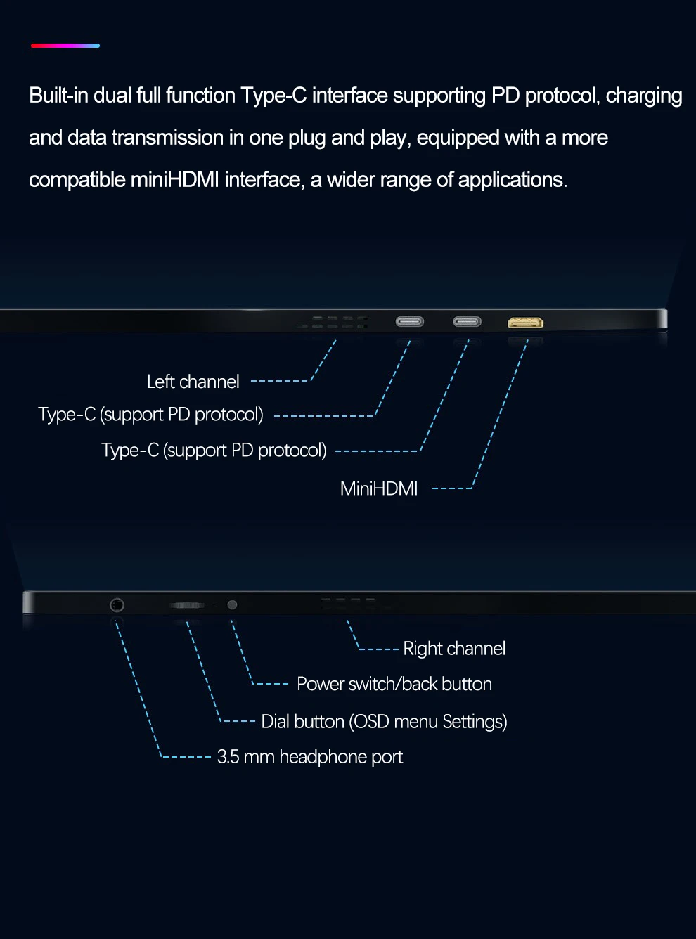 【Universal Compatibility】With a Mini HDMI port, 3.5mm headphone jack, and 2 full-featured USB-C port, the monitor is compatible with most devices, such as PC, Laptop, Mac, Surface, Phone, PS4, PS5, Xbox, NTD Switch, Raspberry Pi, Camera or other laptop/PC, phones, and tablets.