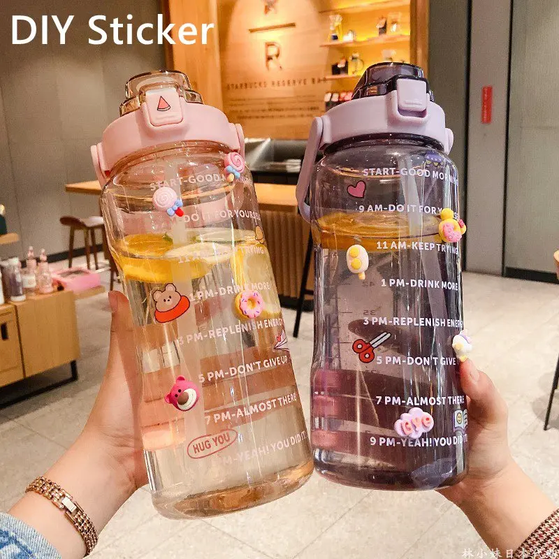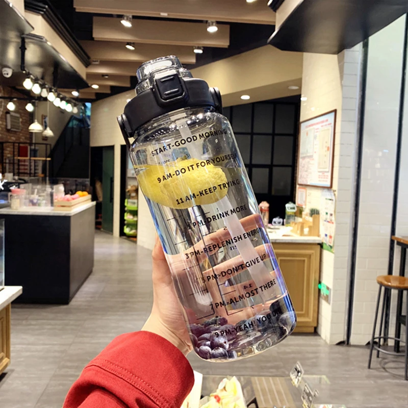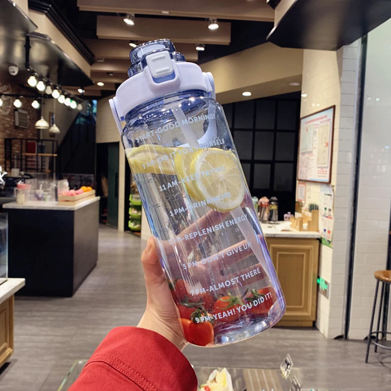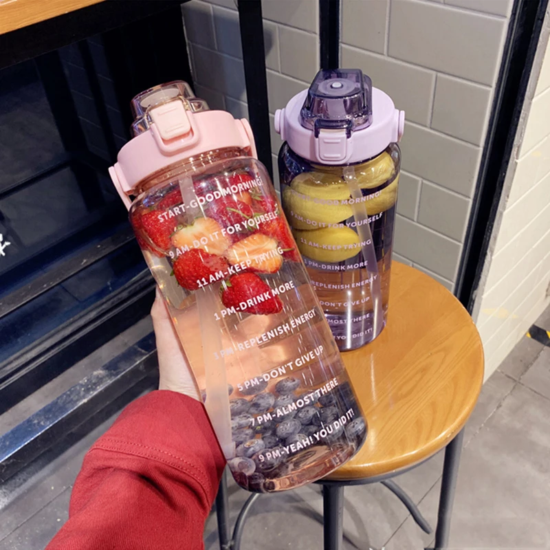2 L Water Bottle Girls Straw Cup Leak-Proof BPA Frosted Cup Time Scale Motivational Drinking Bottle Outdoor Sport Water Bottles