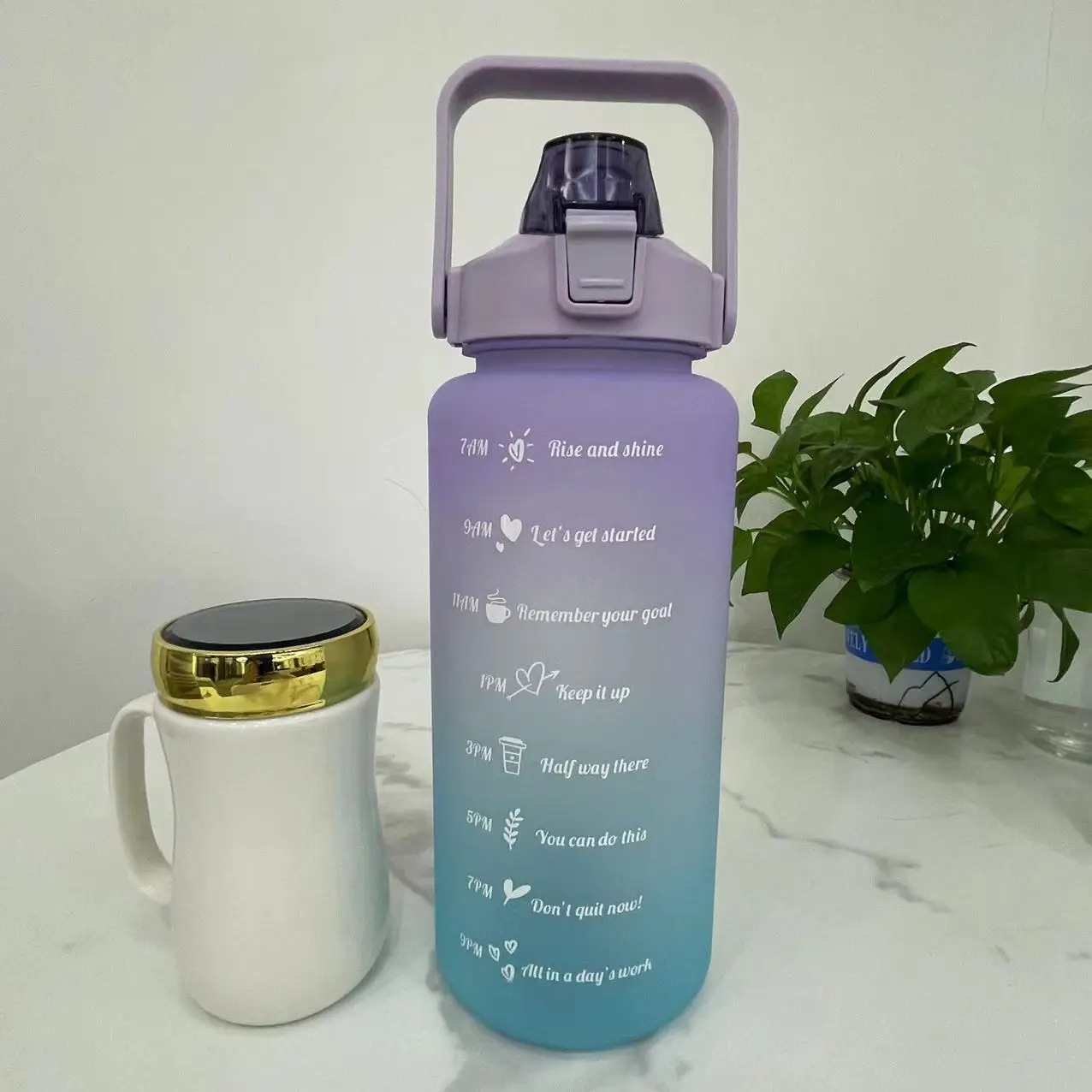 2 L Water Bottle Girls Straw Cup Leak-Proof BPA Frosted Cup Time Scale Motivational Drinking Bottle Outdoor Sport Water Bottles Specification:Material: PC, PP, food grade siliconeColor: purple, green, blue, pinkSize: 29.5*10.5 cm Description:2L large-capacity water bottle with bounce cover, time scale reminder leak-proof frosted cup, outdoor sports and fitnessFeatures:1. Motivational…