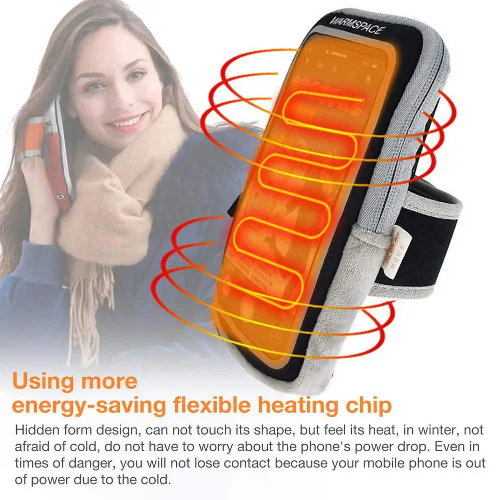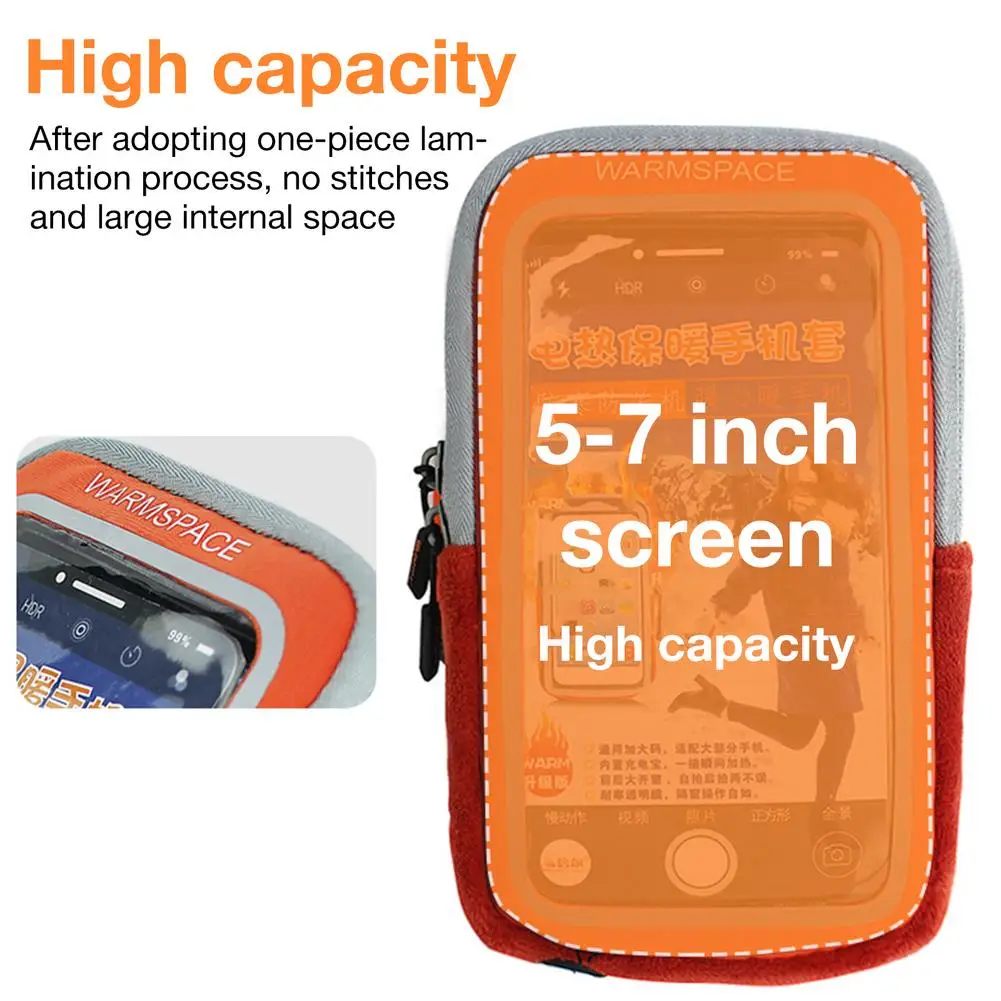 5/7inch Electric Mobile Phone Heating Warm Bag for Mobile Phone Sports Running Arm Pouch Holder Case Cover Winter Cold Heating