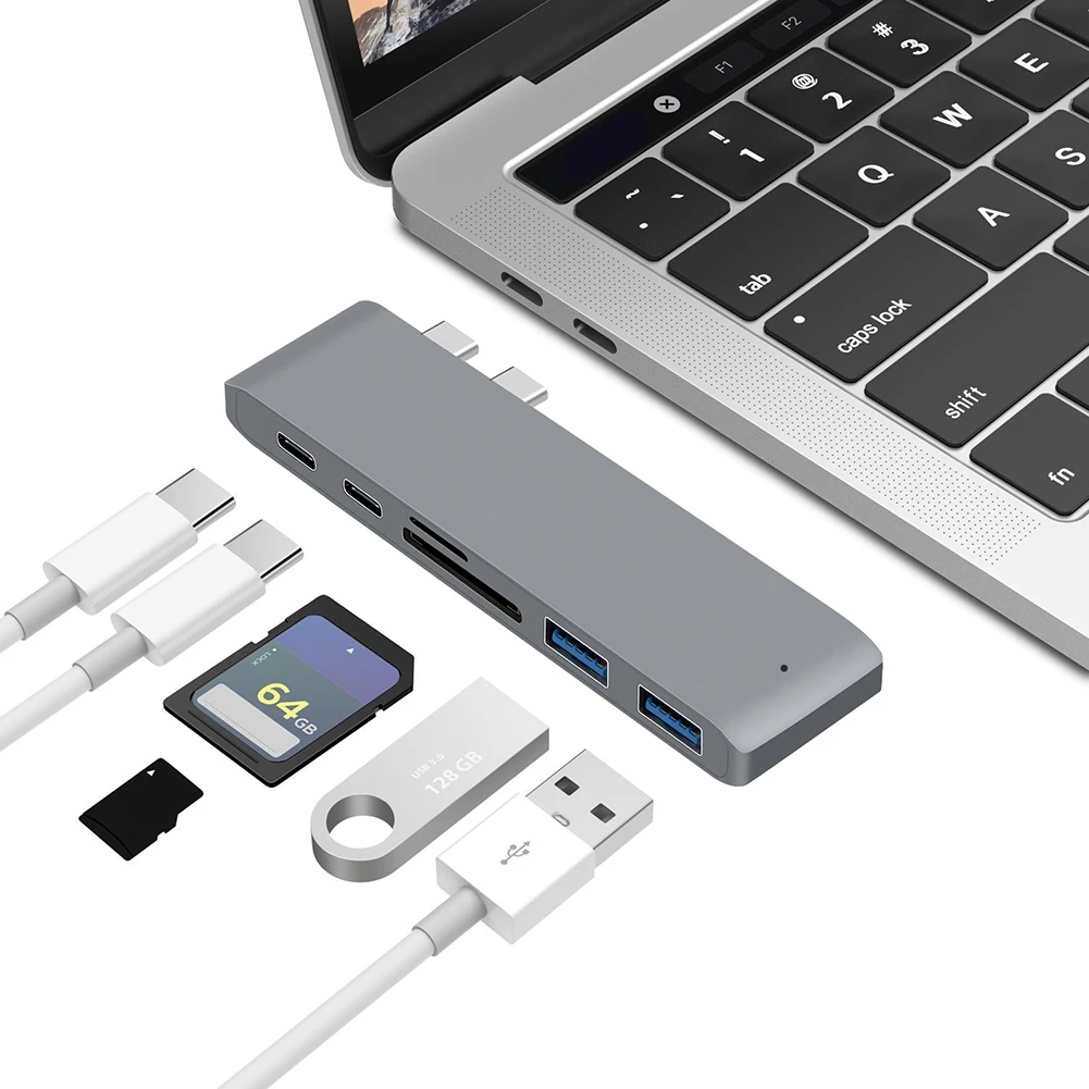Dual Type-C Hub 2 Ports USB 3.0 TF Card Reader Adapter for MacBook Pro 2016 2017 2018 Air 2018 Specifications: Model: pb-9634 Material: Aluminum alloy shell Color: Silver, Grey Interface: USB3.0 * 2 + Secure digital memory card slot + TF slot + Type-C * 2 Transmission rate: 5Gbps (USB3.0)…