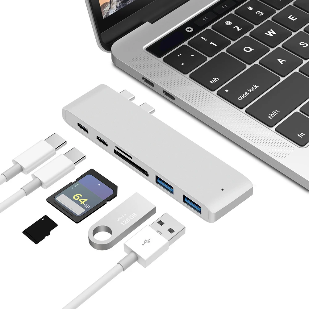 6 in 1 2 USB C HUB Dual Type C to 2 Ports USB 3.0 for MacBook Pro 2016 2017 2018 Air 2018 Adapter Dock SD/TF Port Type C HUB