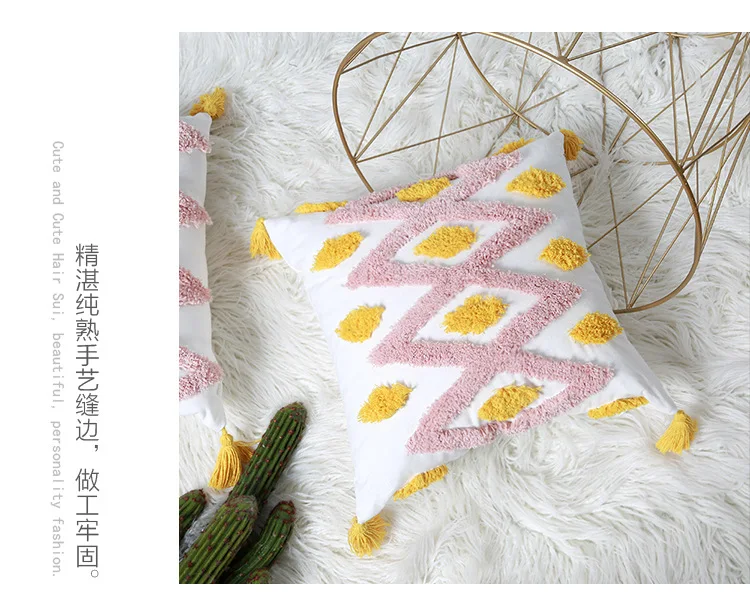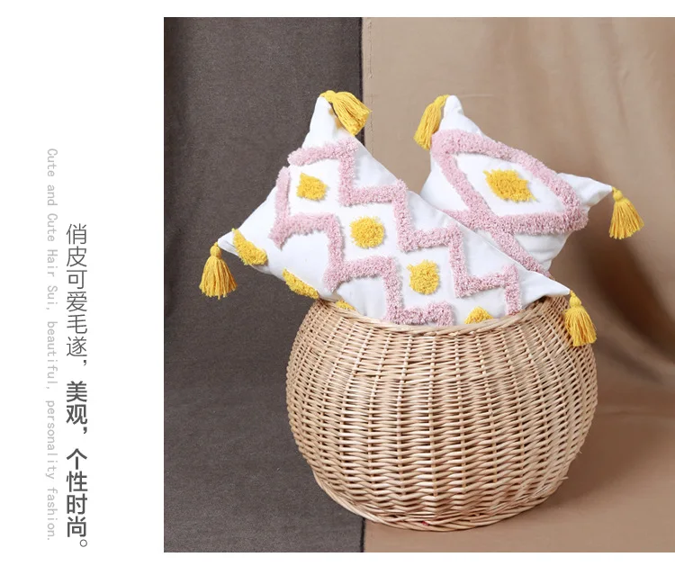 Moroccan Style Cushion Cover Beige Pillowcase Diamond Fringed Square Pillow Cover Home Decoration