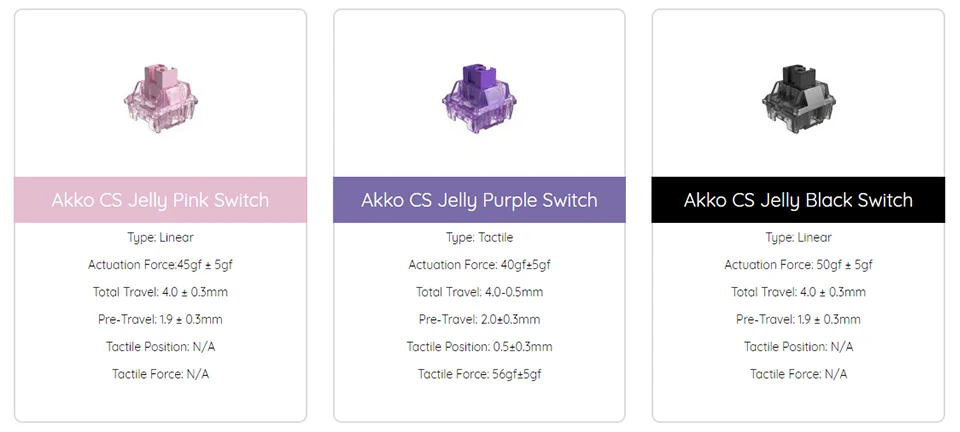 Switch: Akko CS Jelly Pink/Akko CS Jelly Purple/Akko CS Blue/Akko CS White/Akko CS Jelly Black/TTC Demon/TTC Princess