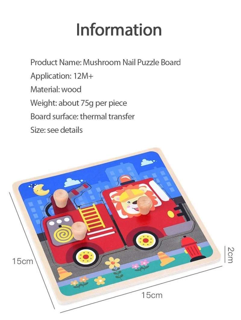 Description: Name: Mushroom nail puzzle board Applicable: 1 year old + Material: wood Weight: about 75g per piece Board surface: thermal transfer Size: 15*15*2cm Specifications: Made of thick wood, hard texture and not easy to deform and crack Large mushroom nail handle, easy for baby to grasp Laser engraving process,…