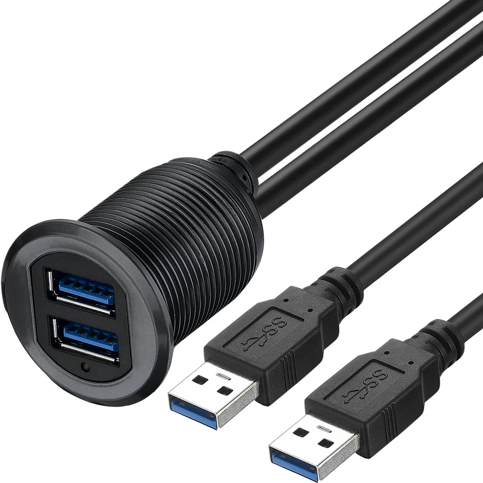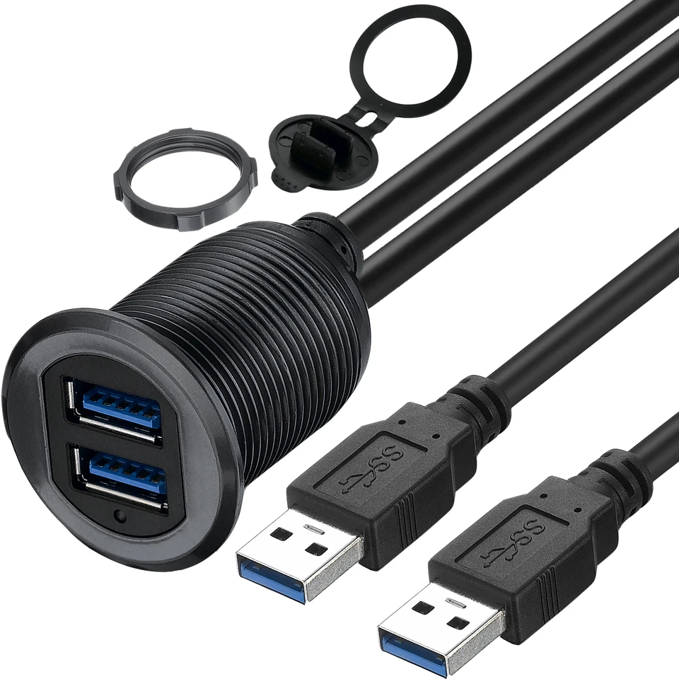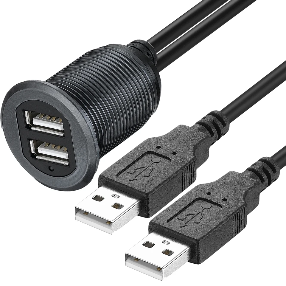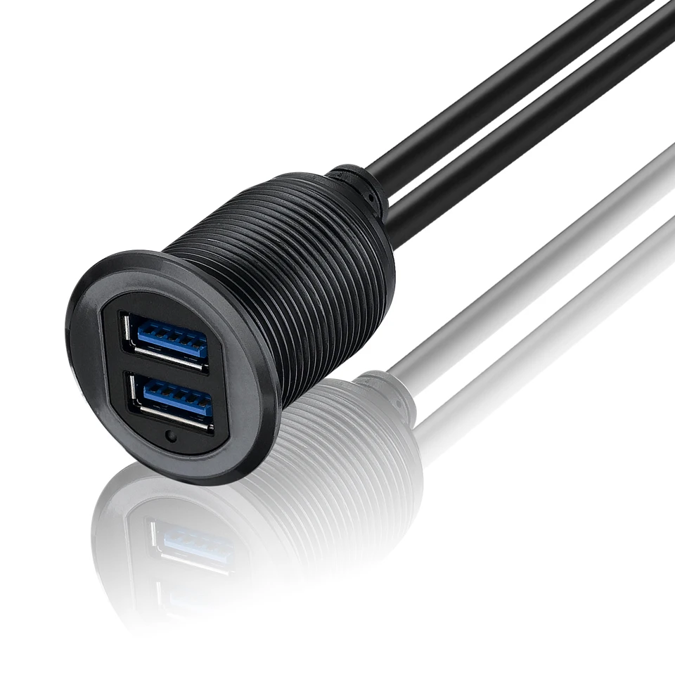 Bochara Flush Mount Panel Dual USB Male to Female Extension Cable