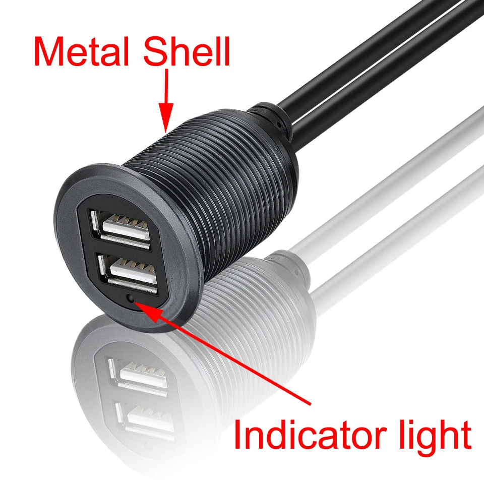 Bochara Flush Mount Panel Dual USB Male to Female Extension Cable With Indicator Light For Car Truck Boat Motorcycle