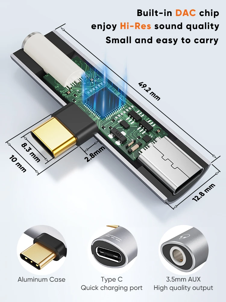 The USB C to 3.5mm audio adapter features a built-in smart chipset to Support volume control and answer calls on compatible devices.