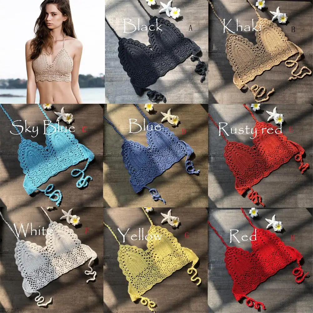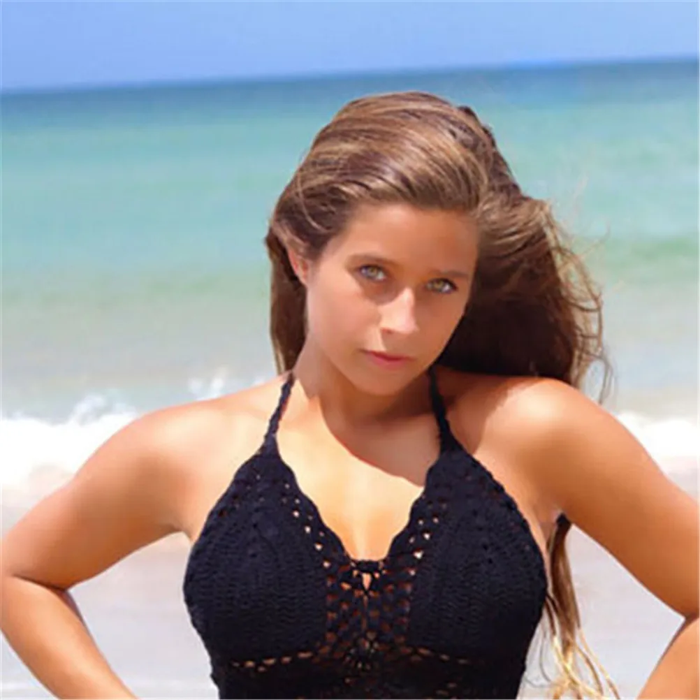 Crop Top Sexy Women Summer Backless Crochet Top Knit Beach Knitting Halter Cami Tank Crop Top Halter Bra