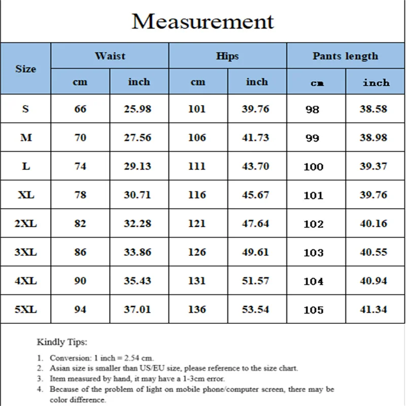 Material:Cotton and linen Size Pant Length/cm Hips/cm Waist/cm S 98 101 66 M 99 106 70 L 100 111 74 XL 101 116 78 2XL 102 121 82 3XL 103 126 86 4XL 104 131 90 5XL 105 136 94 Warm Tip : Please be reminded that due lighting effects,…