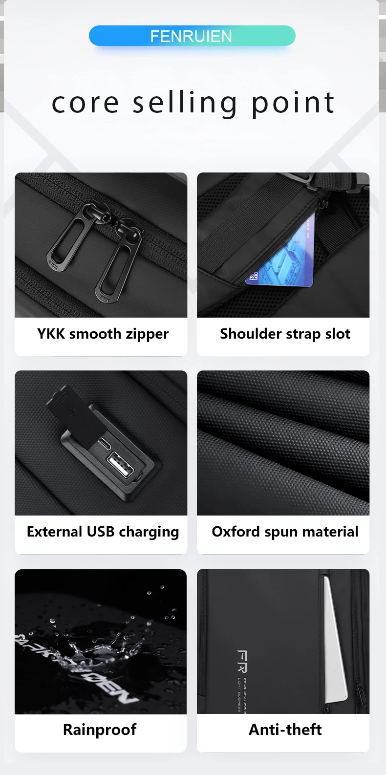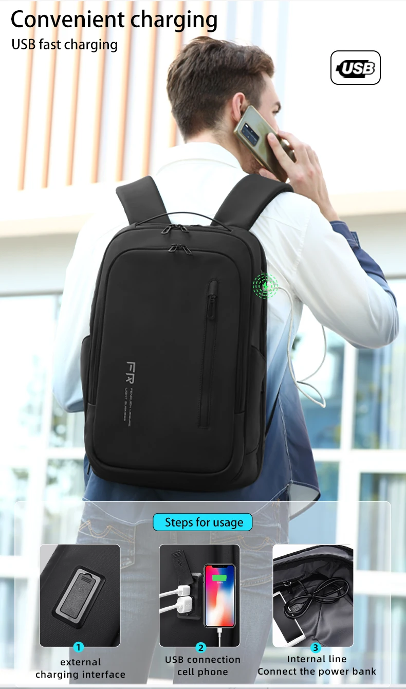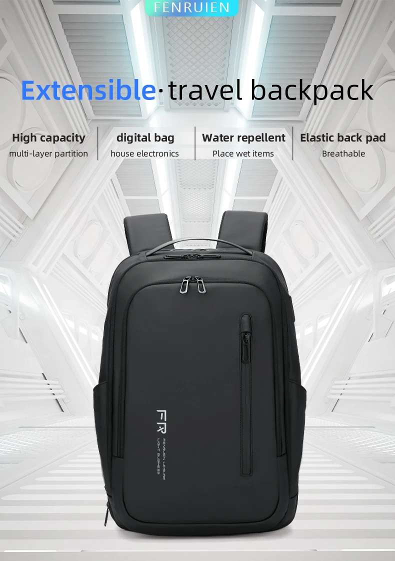 FENRUIEN Fashion College School Bag Lightweight Expandable Backpack Men's 15.6-inch Laptop Bag Daily work travel business bag