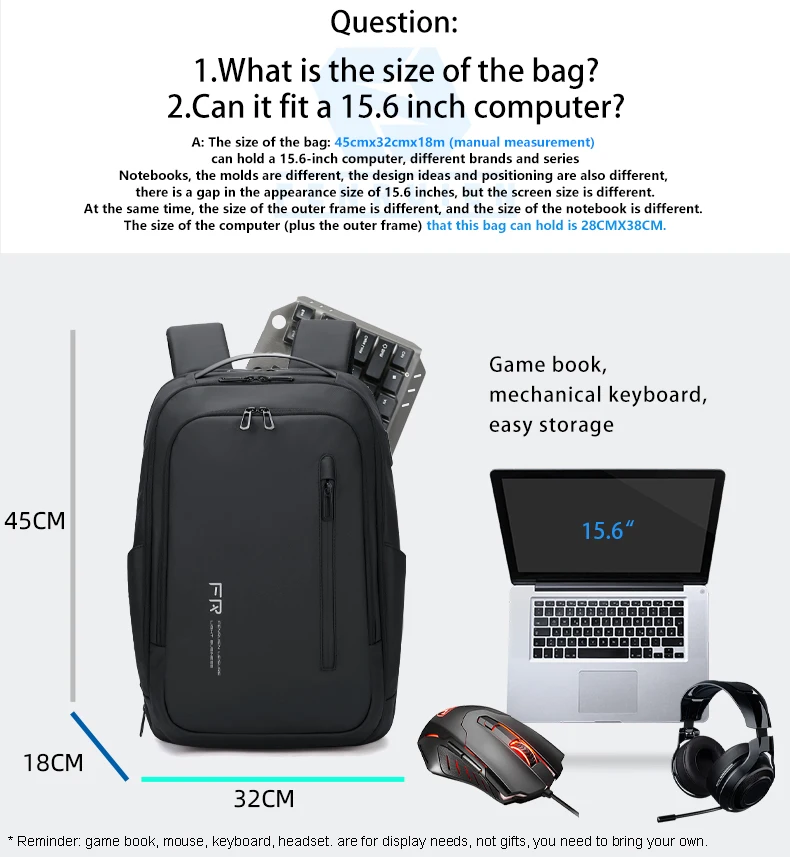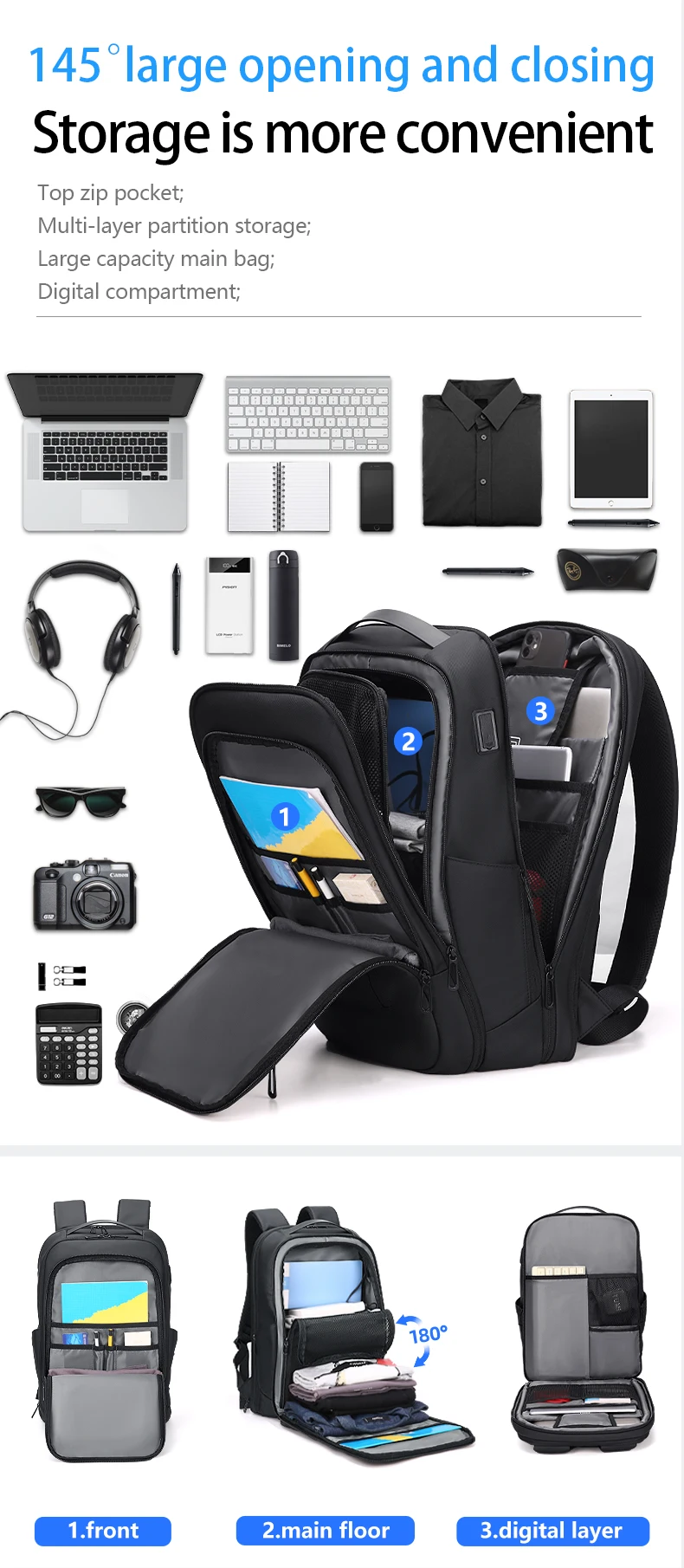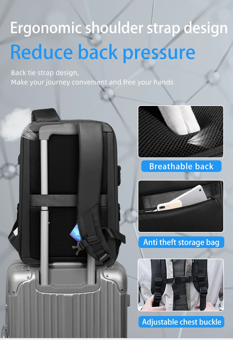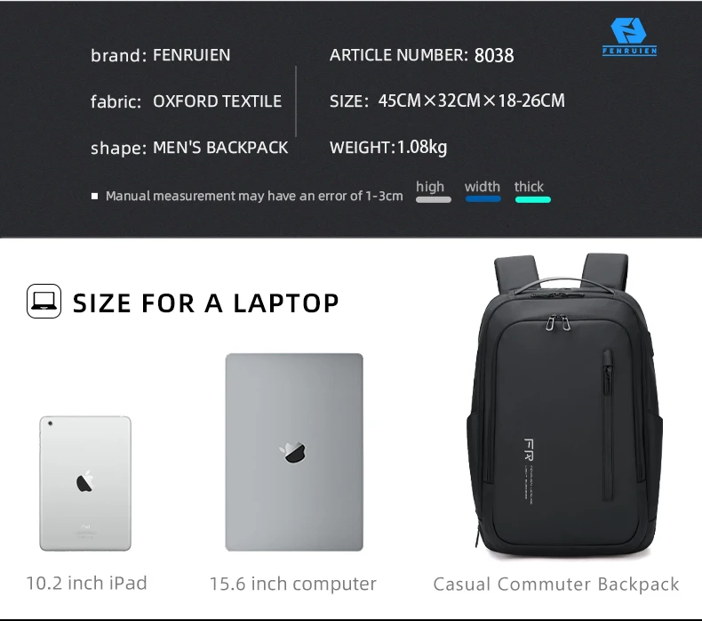 FENRUIEN Fashion College School Bag Lightweight Expandable Backpack Men's 15.6-inch Laptop Bag Daily work travel business bag