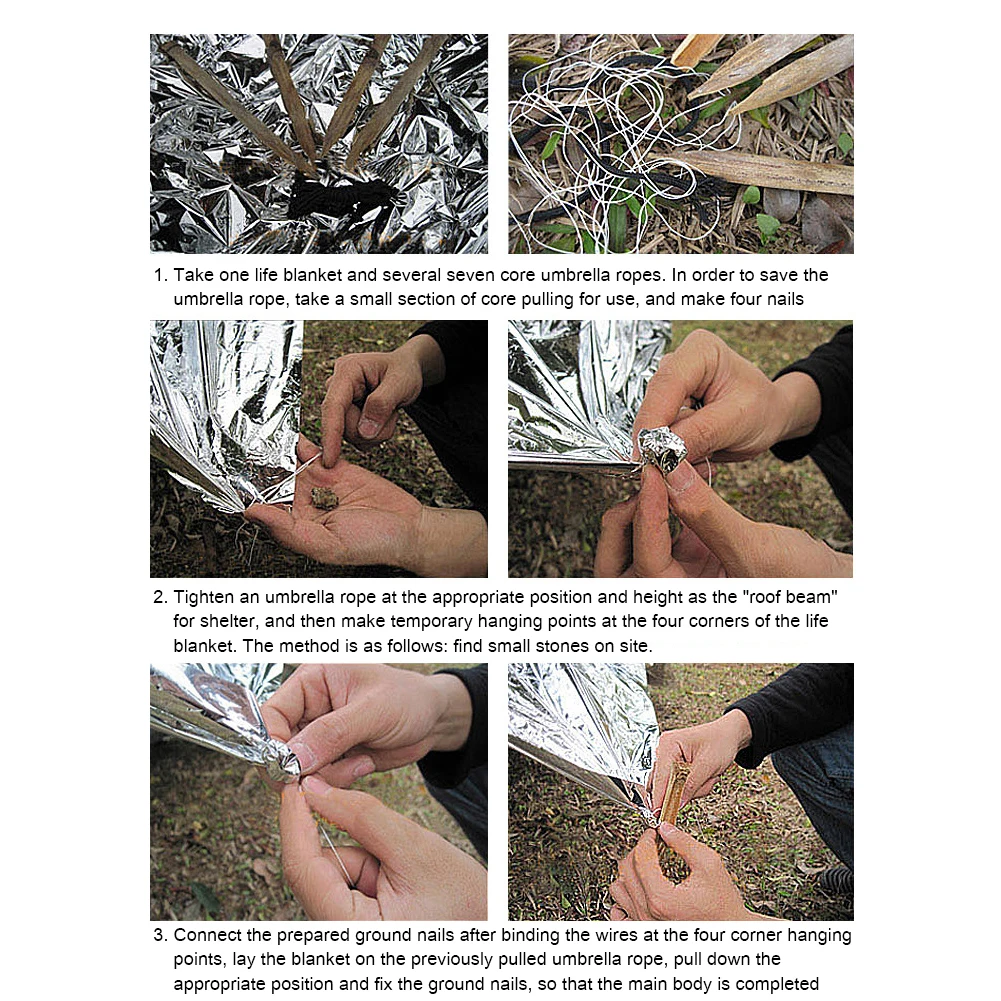 2. Multifunctional: In rainy days, the first aid blanket can be used as a poncho; it can be propped up as a canopy.