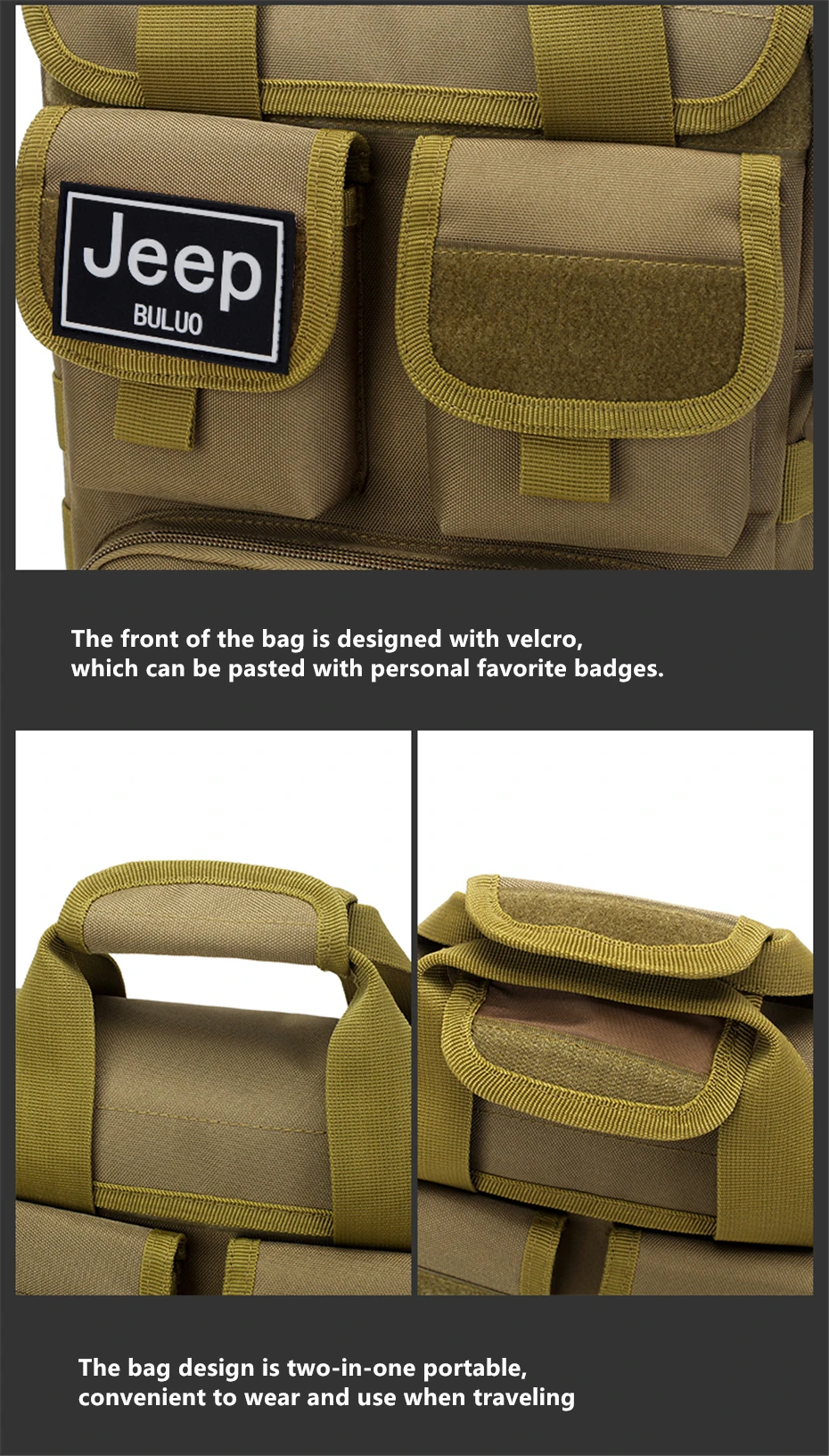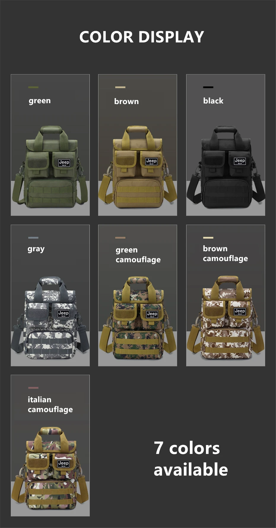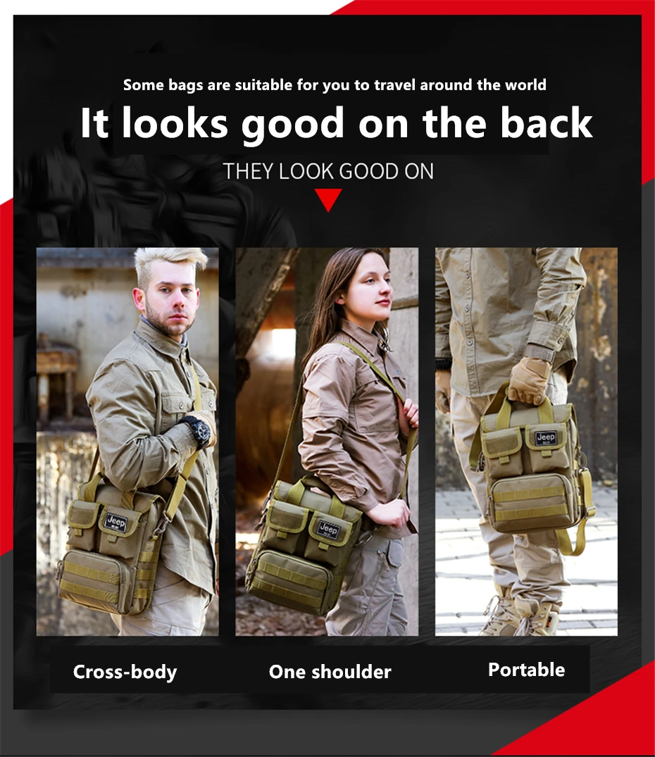 JEEP BULUO Men's Shoulder Bags Travel Large Size For Man Trend Tote Army Green Camouflage Handbags Casual Cossbody Bag +++ World famous brand .+++ 100% high quality.+++ FOB , OEM .+++ We support drop shipping, wholesale .
