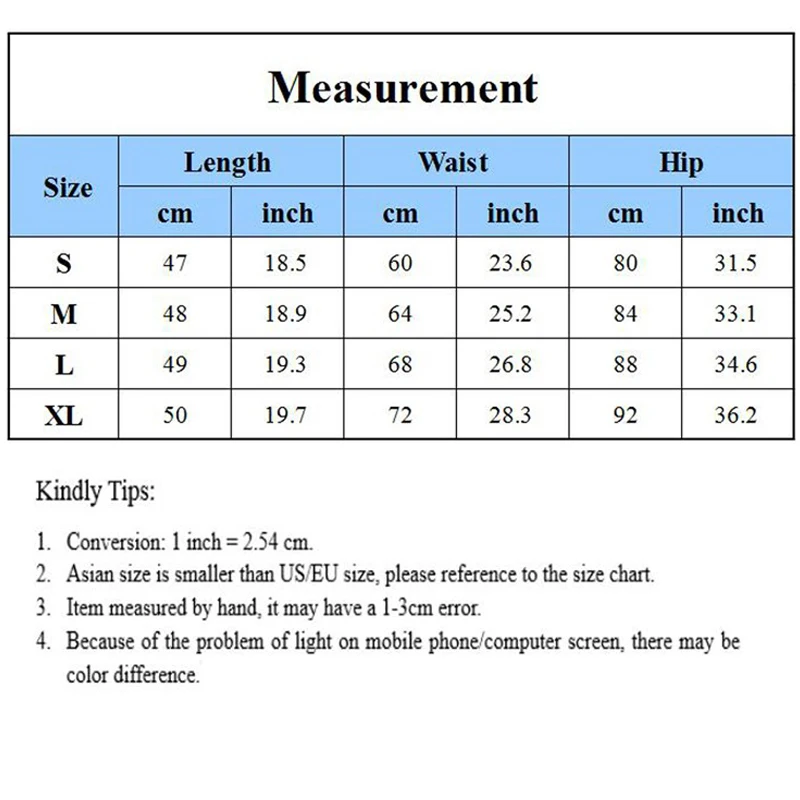 XL: The skirt length is about 40cm, the waist circumference is about 78cm, the hip circumference is about 100cm, and the error is about 3cm
