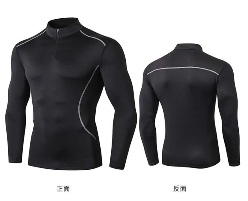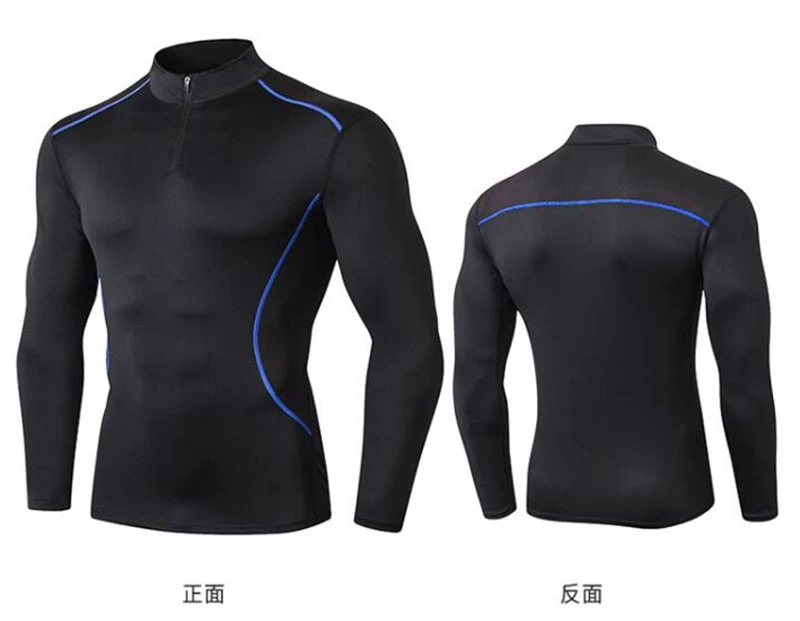 Men's Autumn winter stand-up collar fitness gym clothing PRO sports running training long sleeved quickdrying tights Polo Shirt