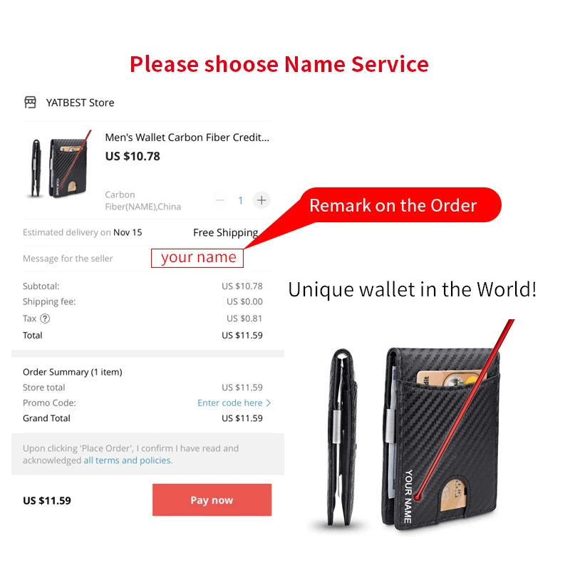 Please give us your name within 24 hours or we will add the receiver name on the wallet.