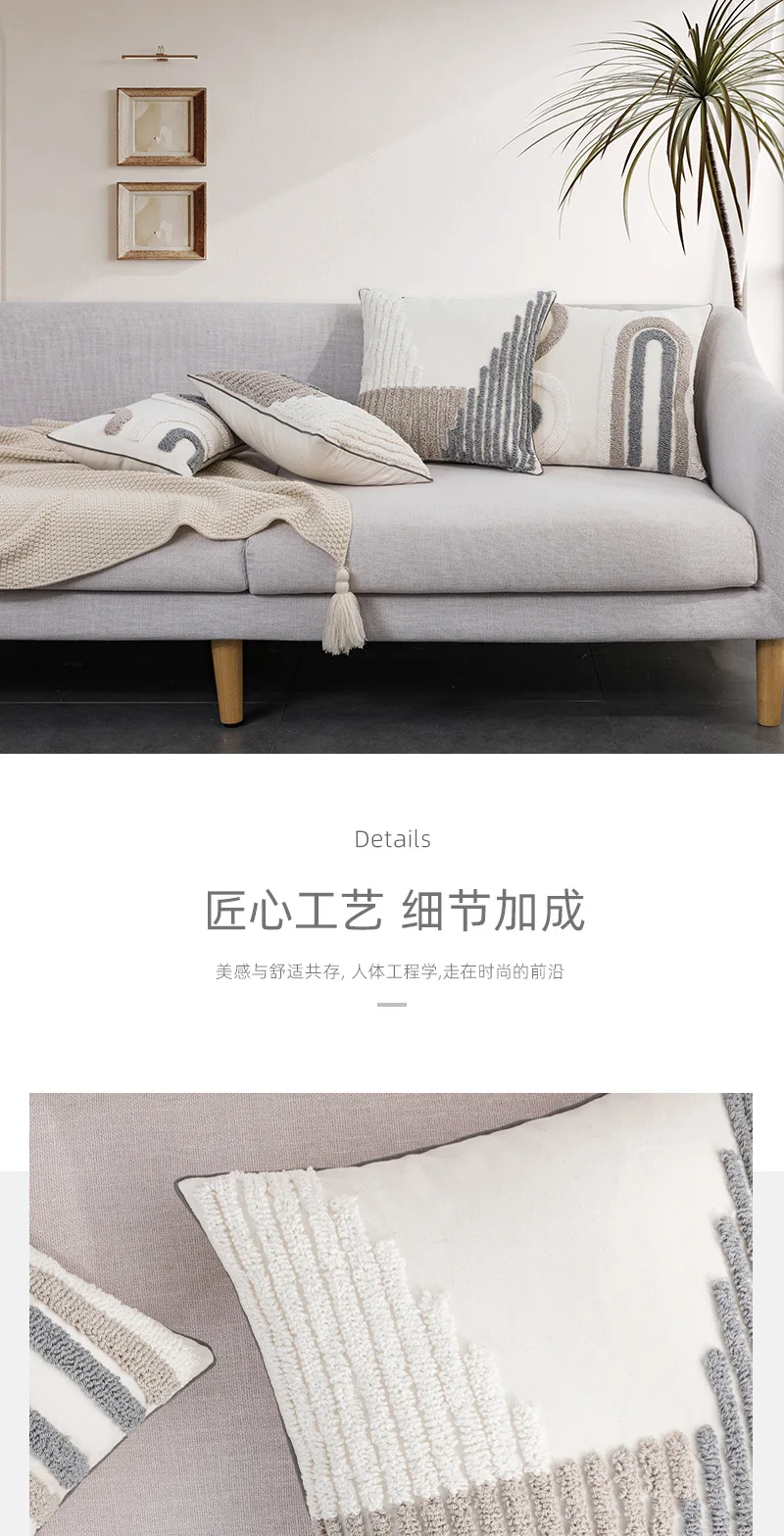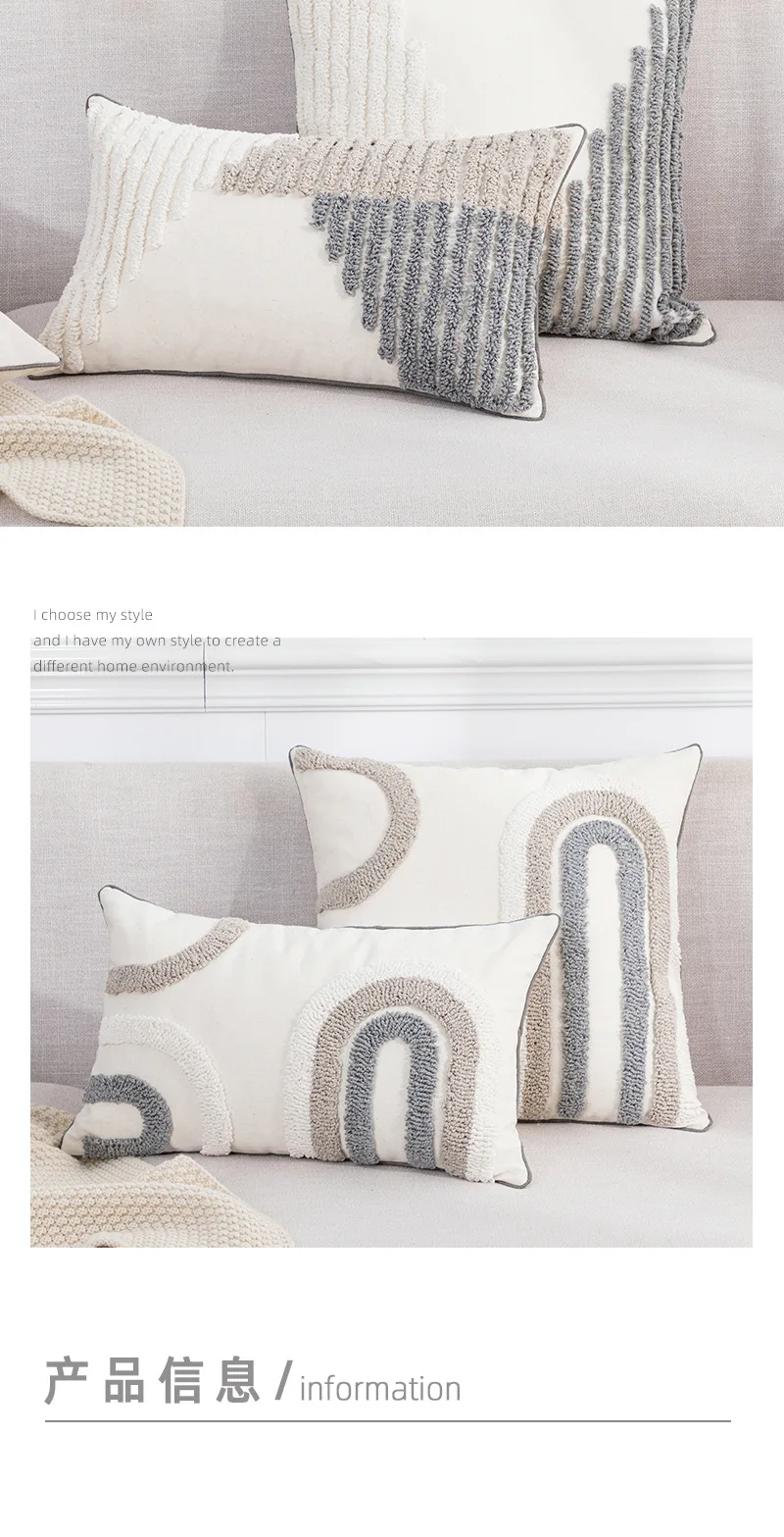 Moroccan Boho Loop Velvet Pillowcase Grey Beige Pillowslip Home Decoration Dimond Tufted for Sofa Bed Chair Cushion Cover