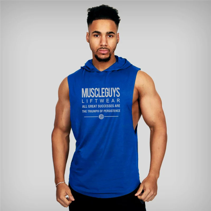 Muscleguys Liftwear Sleeveless Shirt with hoody Brand gyms Clothing Fitness Men Bodybuilding stringer tank tops Hoodies singlets