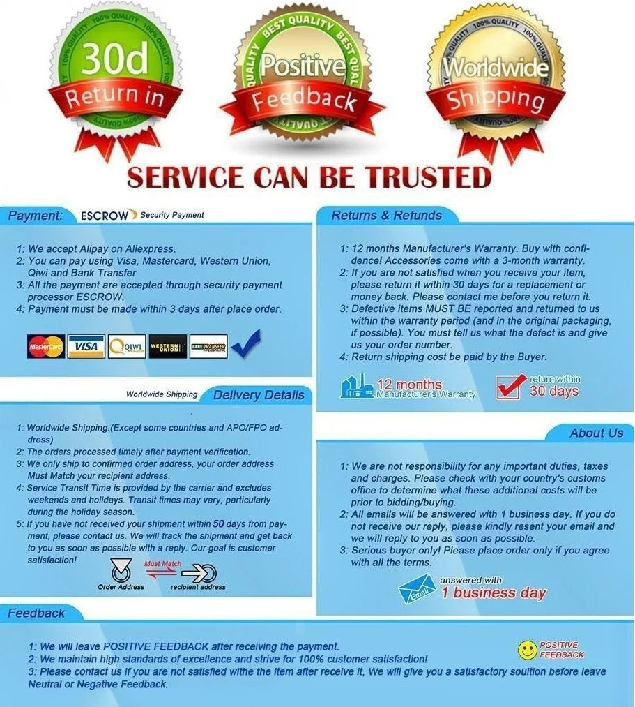 • If you did not receive the product within the guaranteed time( 45 days not including 2-5 day processing) you can request a refund or a reshipment.