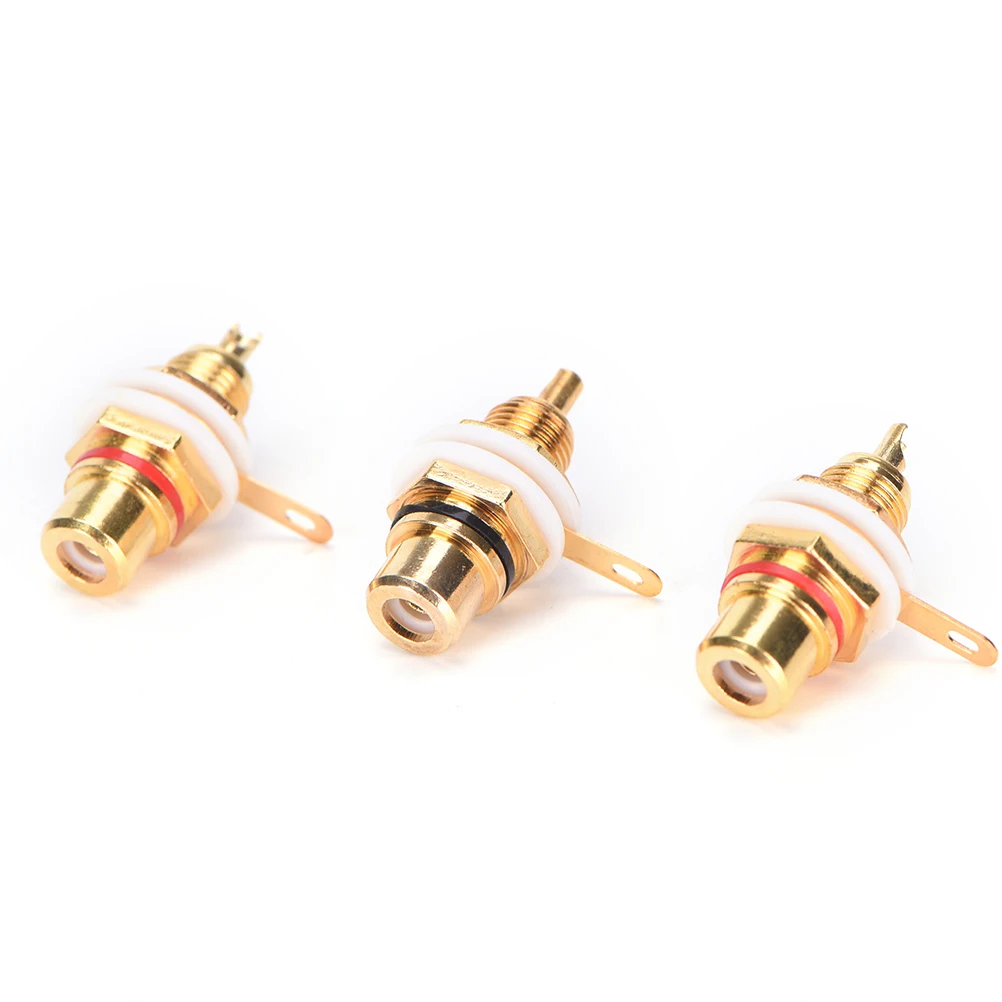 RCA Female Jack 10pcs Plated Rca Connector Gold Panel Mount Chassis Audio Socket Plug Bulkhead White Cycle With Nut Solder Cup