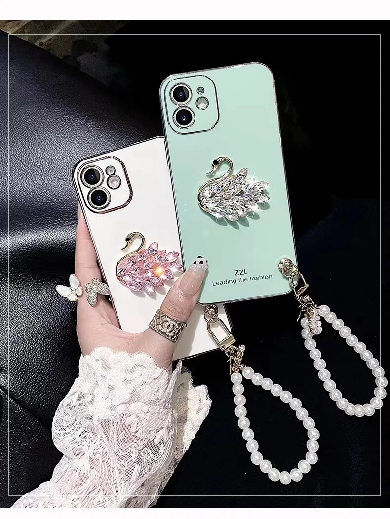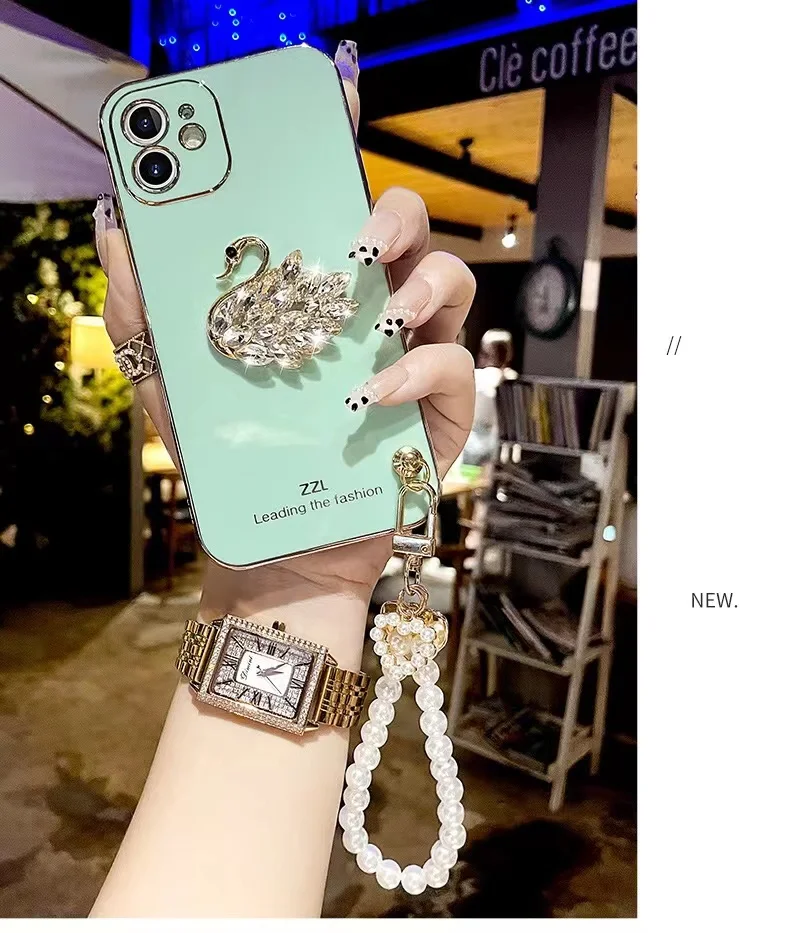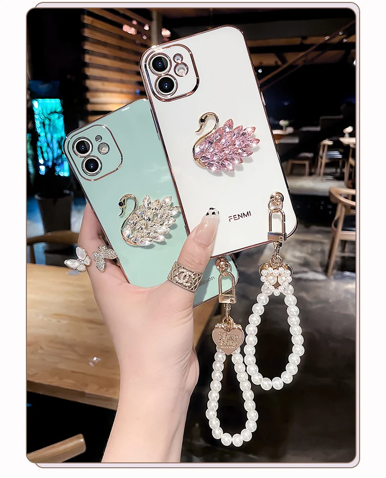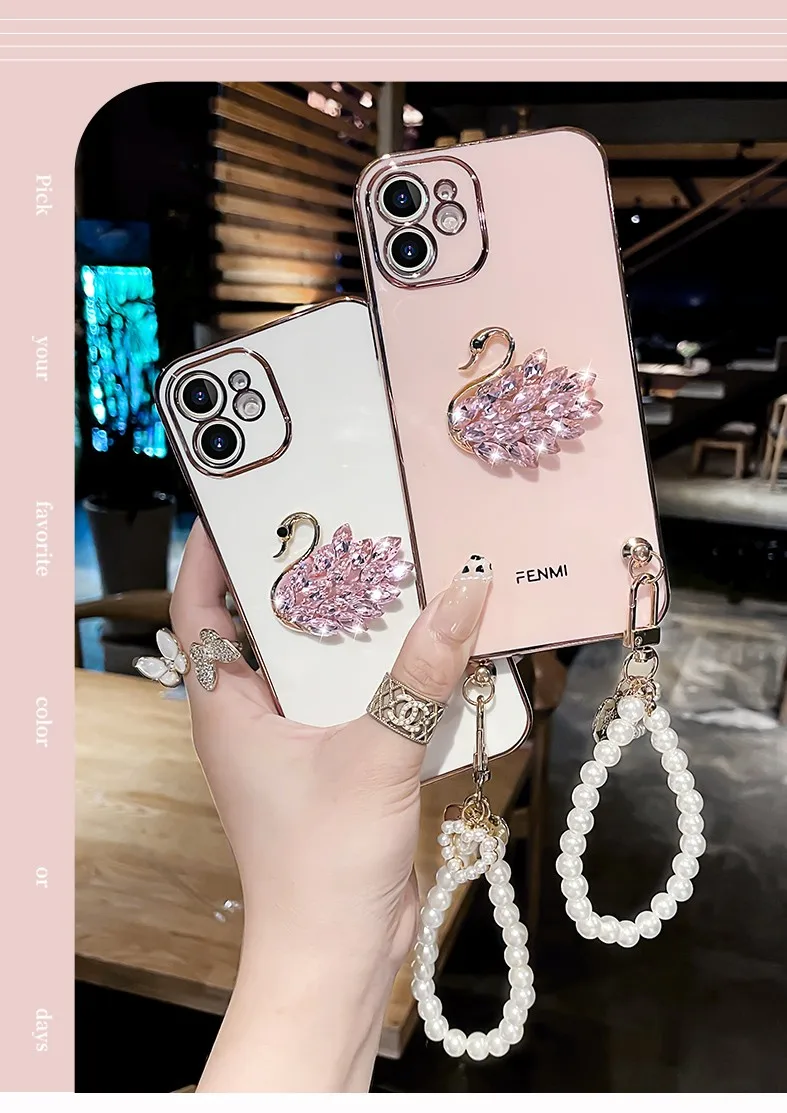 Rhinestone Swan Pearl Bracelet Heart For Samsung S10 A32 A52 A72 S20 S21 S22 Plus Ultra + Pro FE A 71 51 Note 10 20 Phone Case