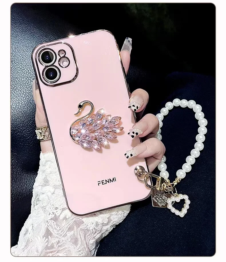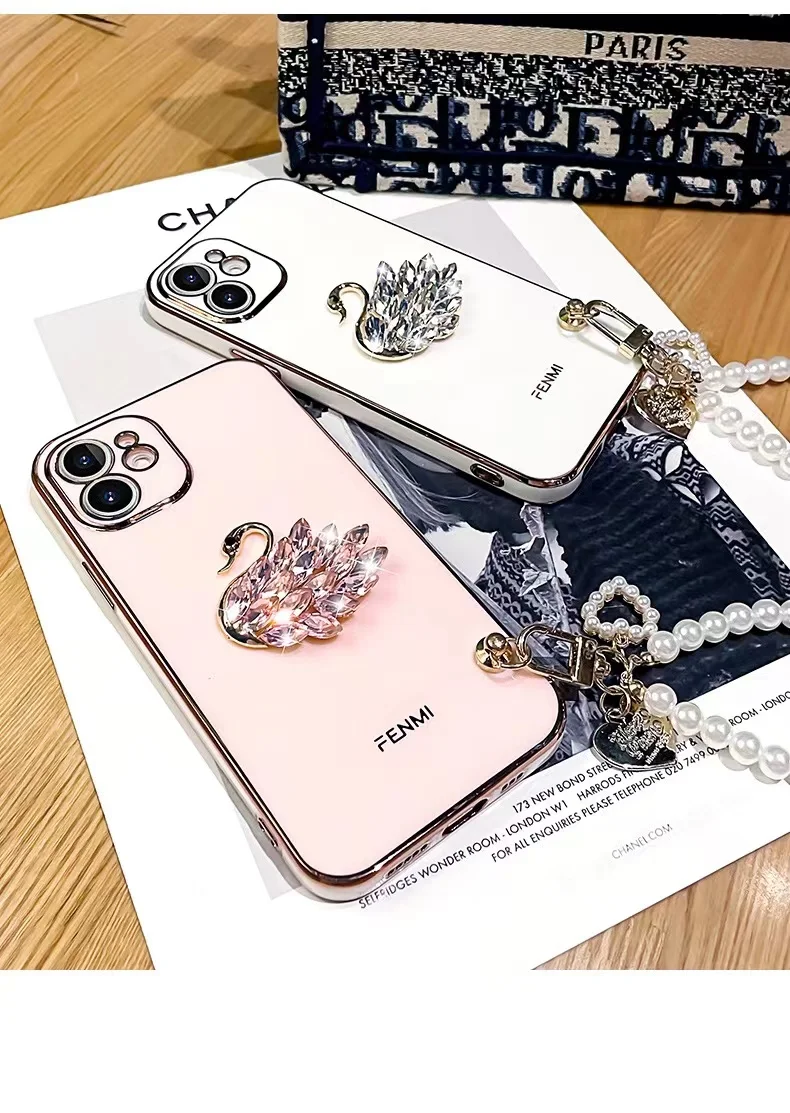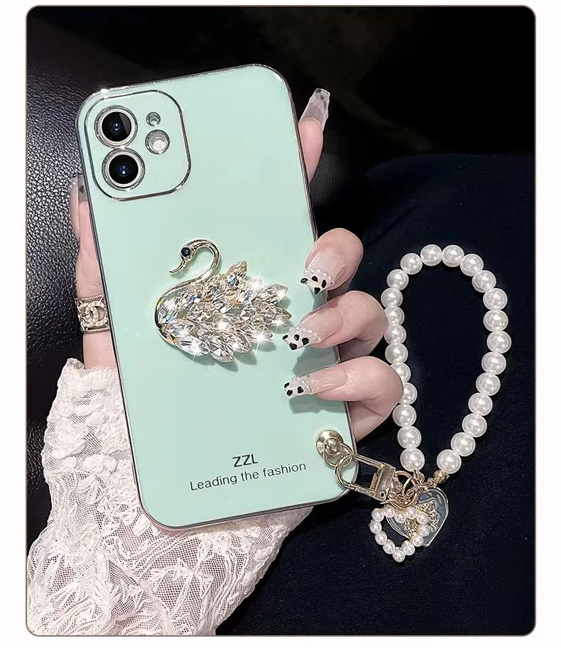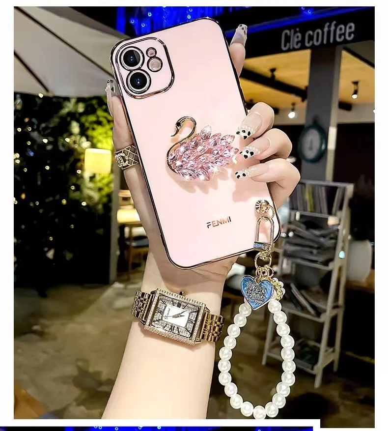 Rhinestone Swan Pearl Bracelet Heart For Samsung S10 A32 A52 A72 S20 S21 S22 Plus Ultra + Pro FE A 71 51 Note 10 20 Phone Case