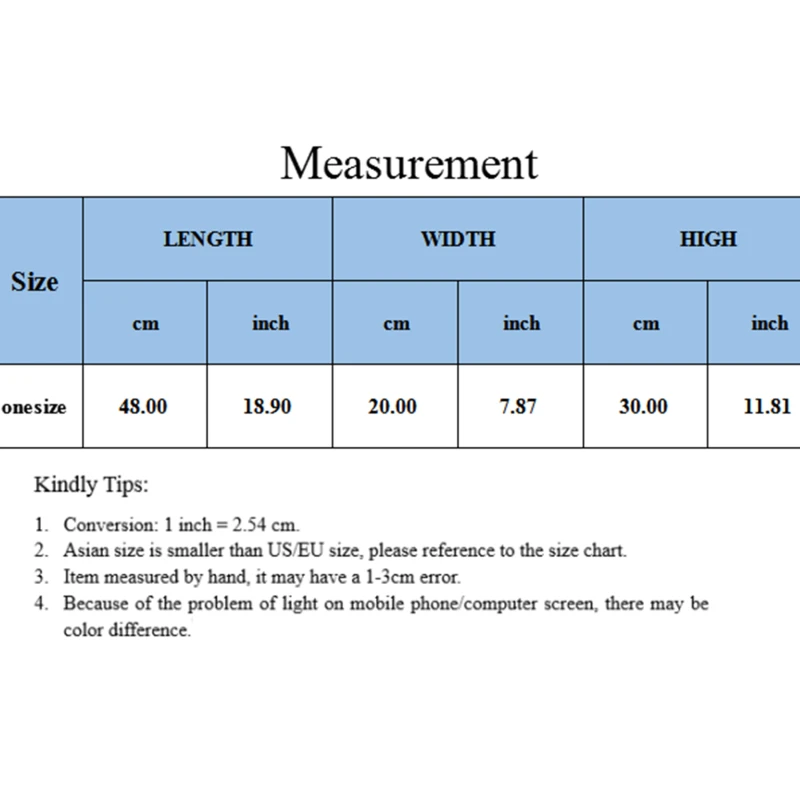 2. Please allow 2-3cm differences due to manual measurement.(1cm=0.39inch, 1 inch=2.54cm)