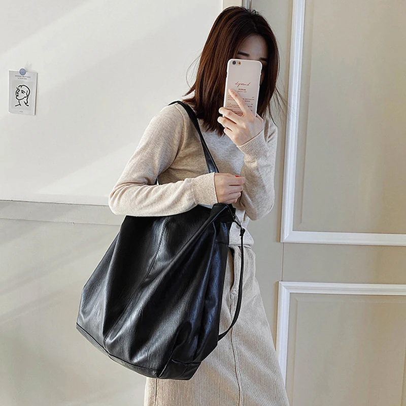Soft Large Capacity Luxury Bag Handbags For Women Design Pu Leather Women's Shoulder Bag 2022 Tote Retro Oversized Shopper Bag