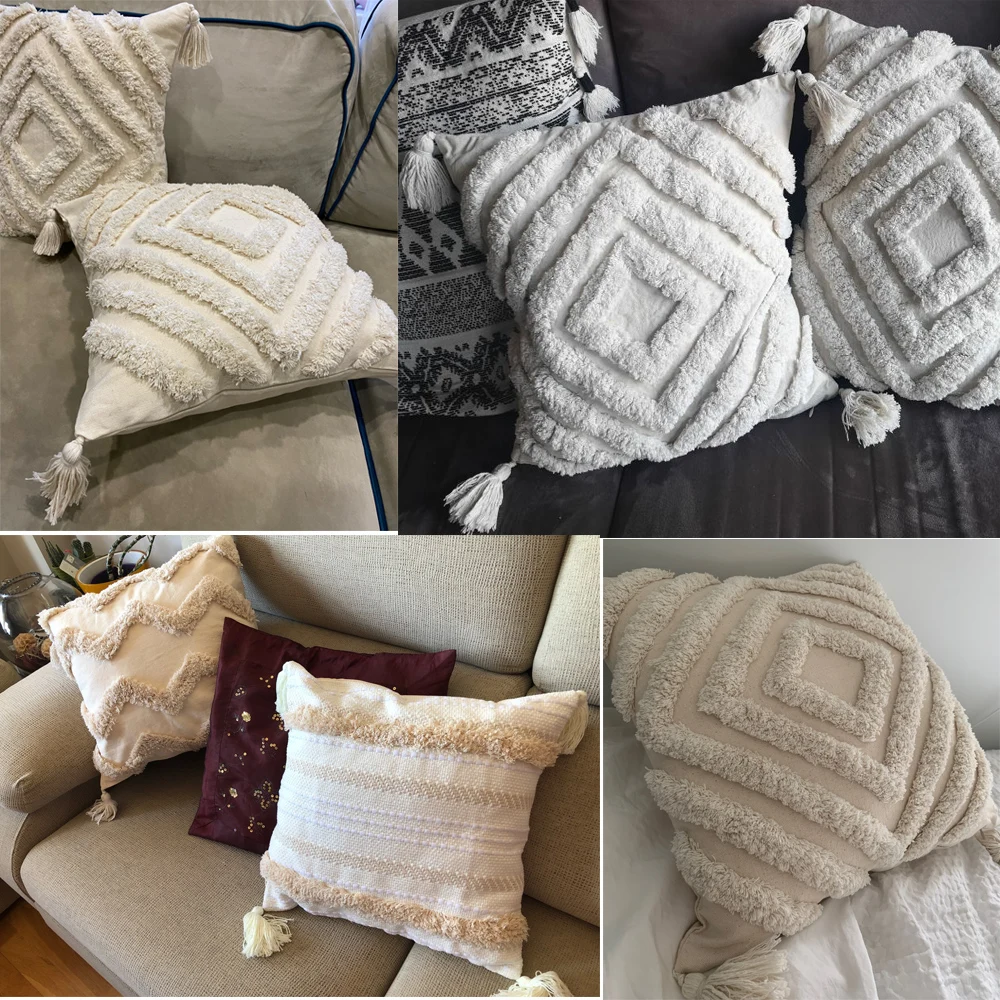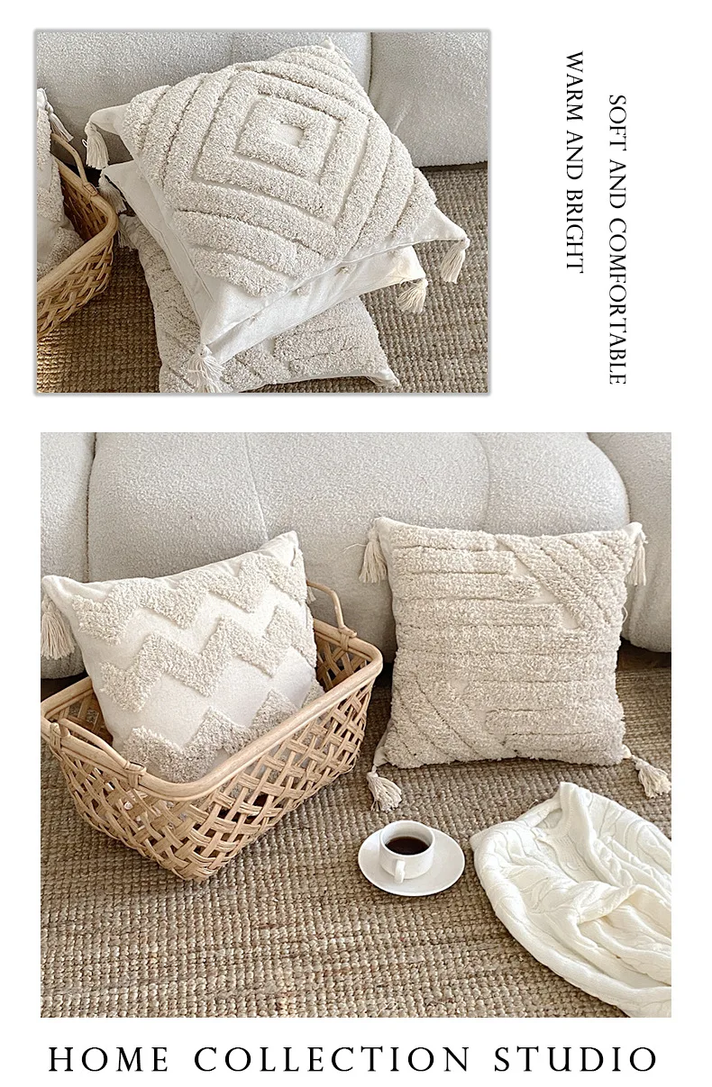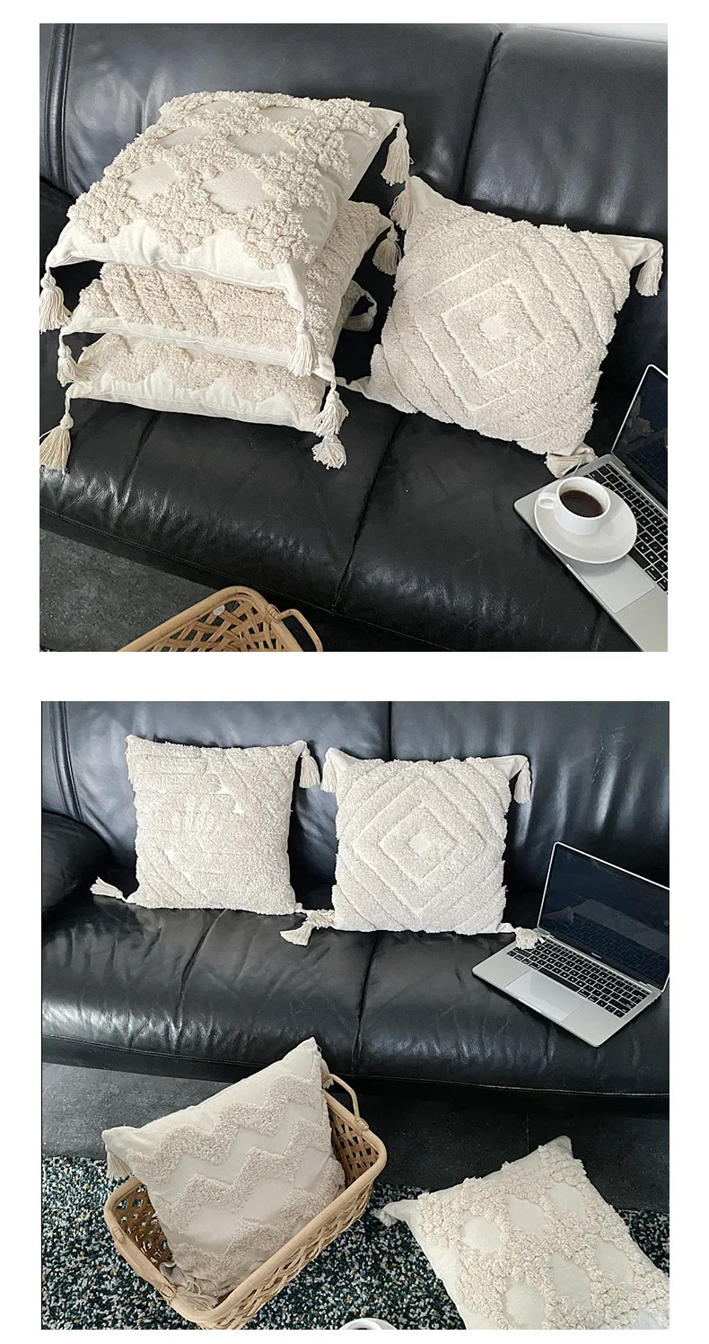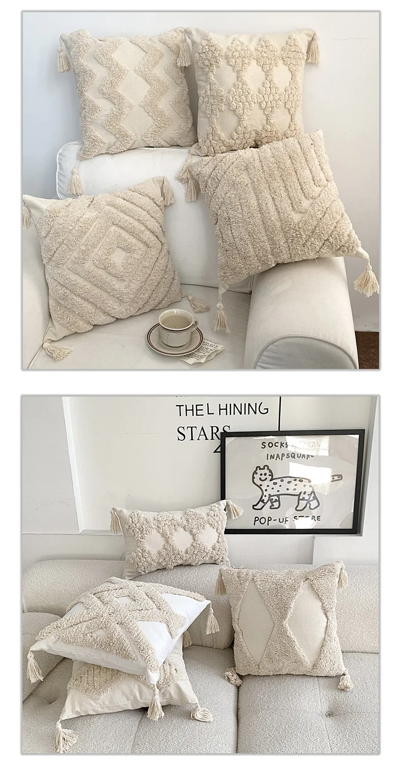 Moroccan Style Cushion Cover Beige Pillowcase Diamond Fringed Square Pillow Cover Home Decoration