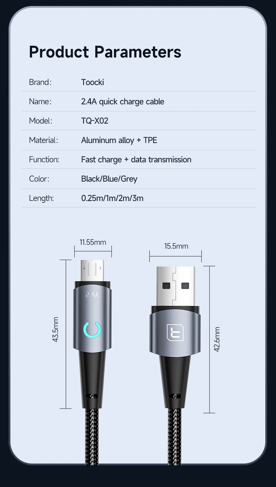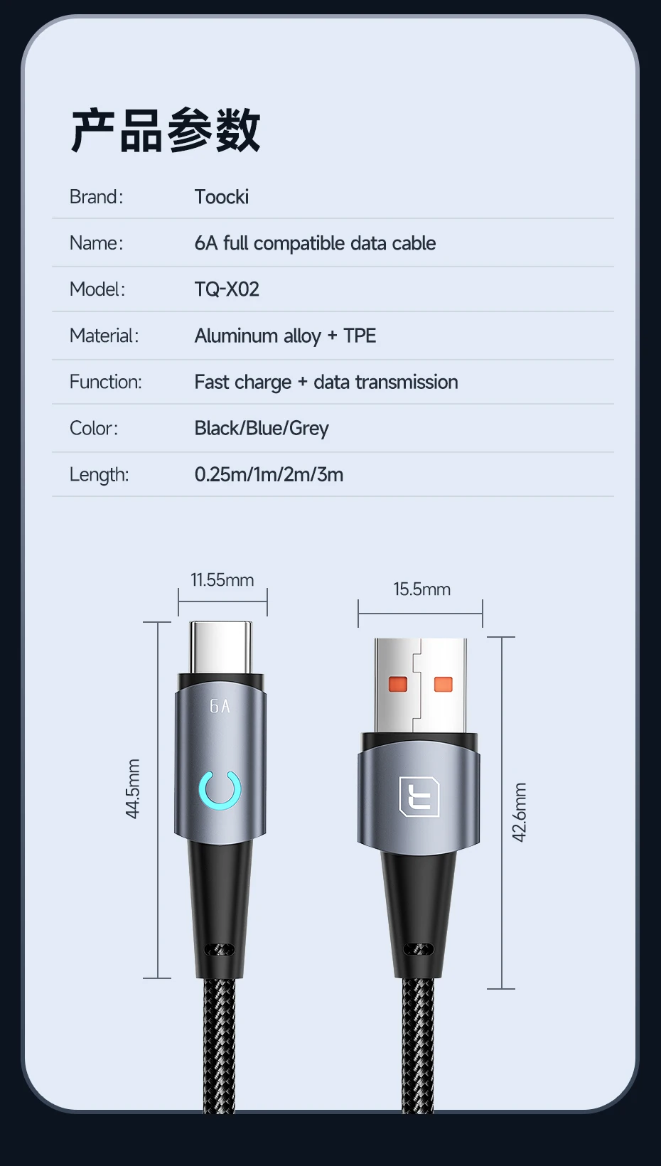 Toocki Lightning Cable For iphone 13 12 Pro 6A USB Type C Wire For Samsung Xiaomi Mobile Phone Fast Charging Micro usb Data Cord