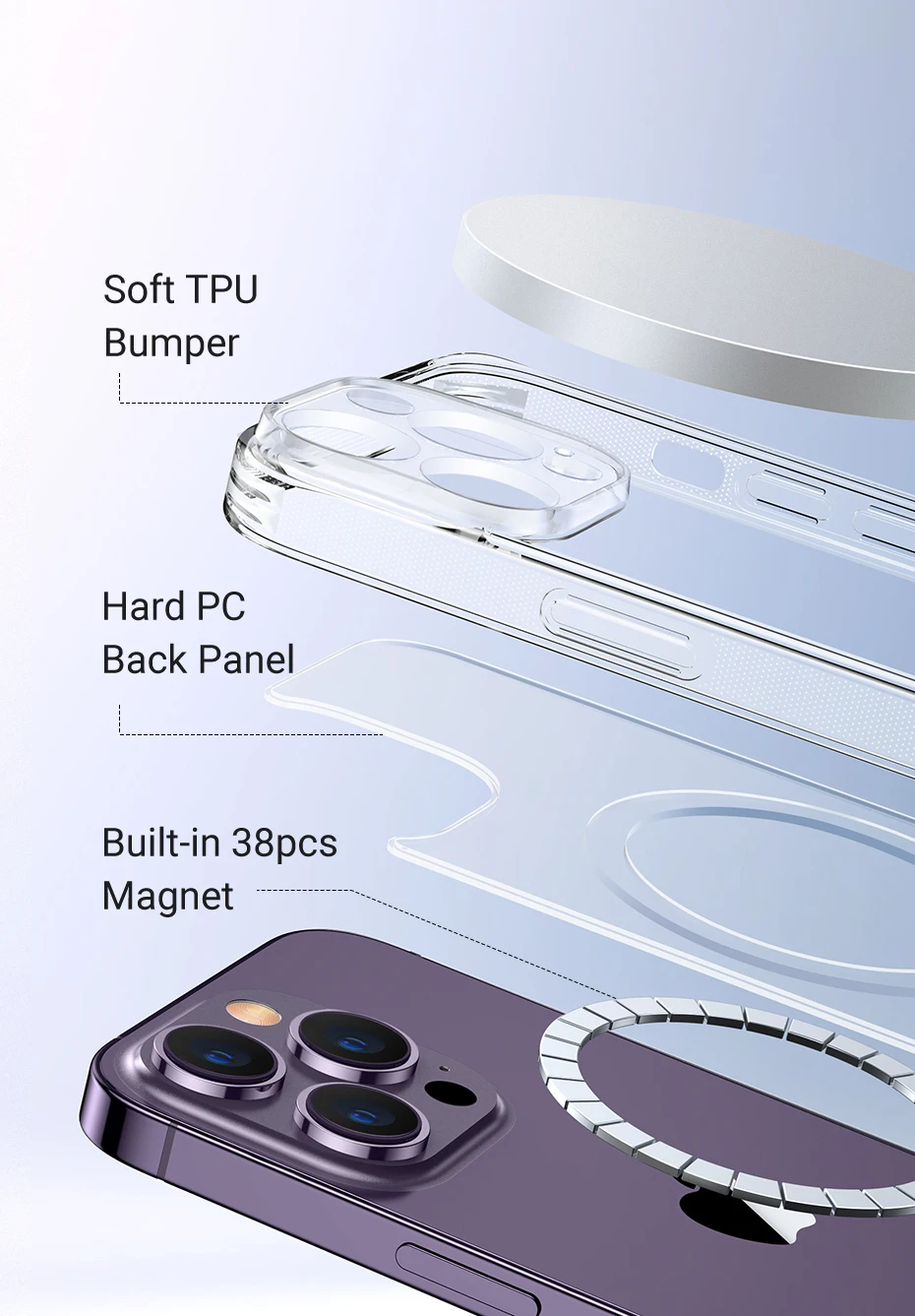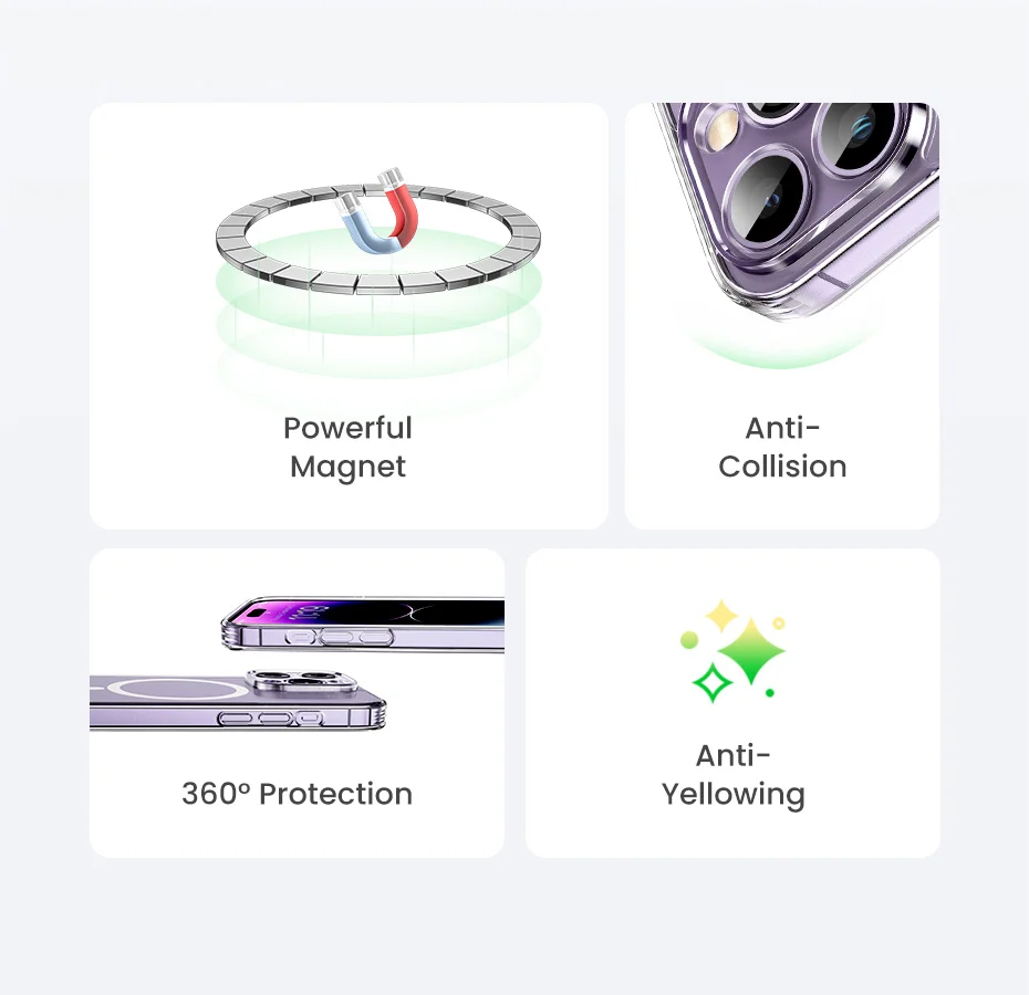UGREEN ◎ Brand Newest Release ◀◀ Born for Wireless Charging ▶▶ Magnetic Official Phone Case Thin, Slim, and Crystal Clear Strong Magnetic Adsorption Full Lens protection HD High Transparency Military Grade Anti-fall Automatic Alignment Charge your phone wirelessly and smoothly as it can automatically align Strong Magnetic Adsorption Built-in 38pcs…