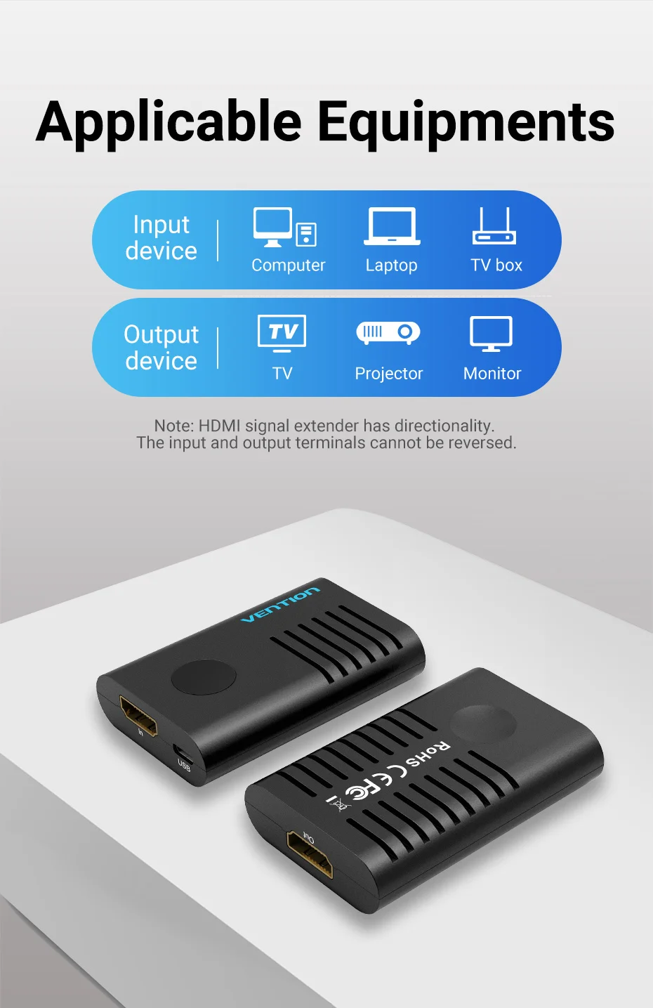 Note: HDMI signal extender has directionality,