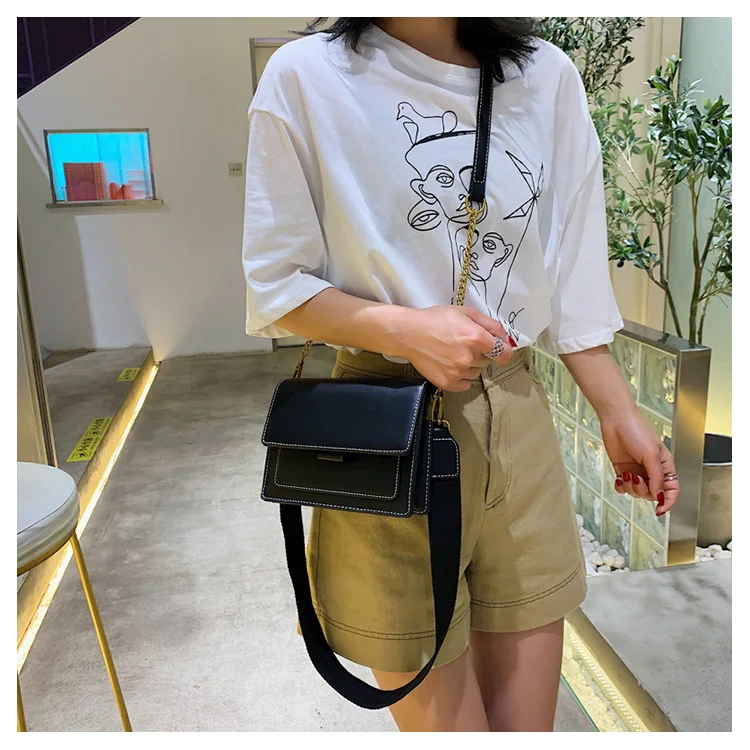YBYT fashion PU Leather women messenger bag luxury handbags women bags designer chain wide shoulder strap crossbody shopping bag Description Item Type: crossbody bags Color:black,green,yellow,khkai Main Material:PU Lining Material :NO Size:long19cm width7cm high15cm number:2346 weight:0.55kg