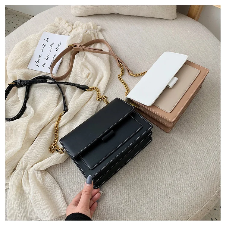 YBYT fashion PU Leather women messenger bag luxury handbags women bags designer chain wide shoulder strap crossbody shopping bag